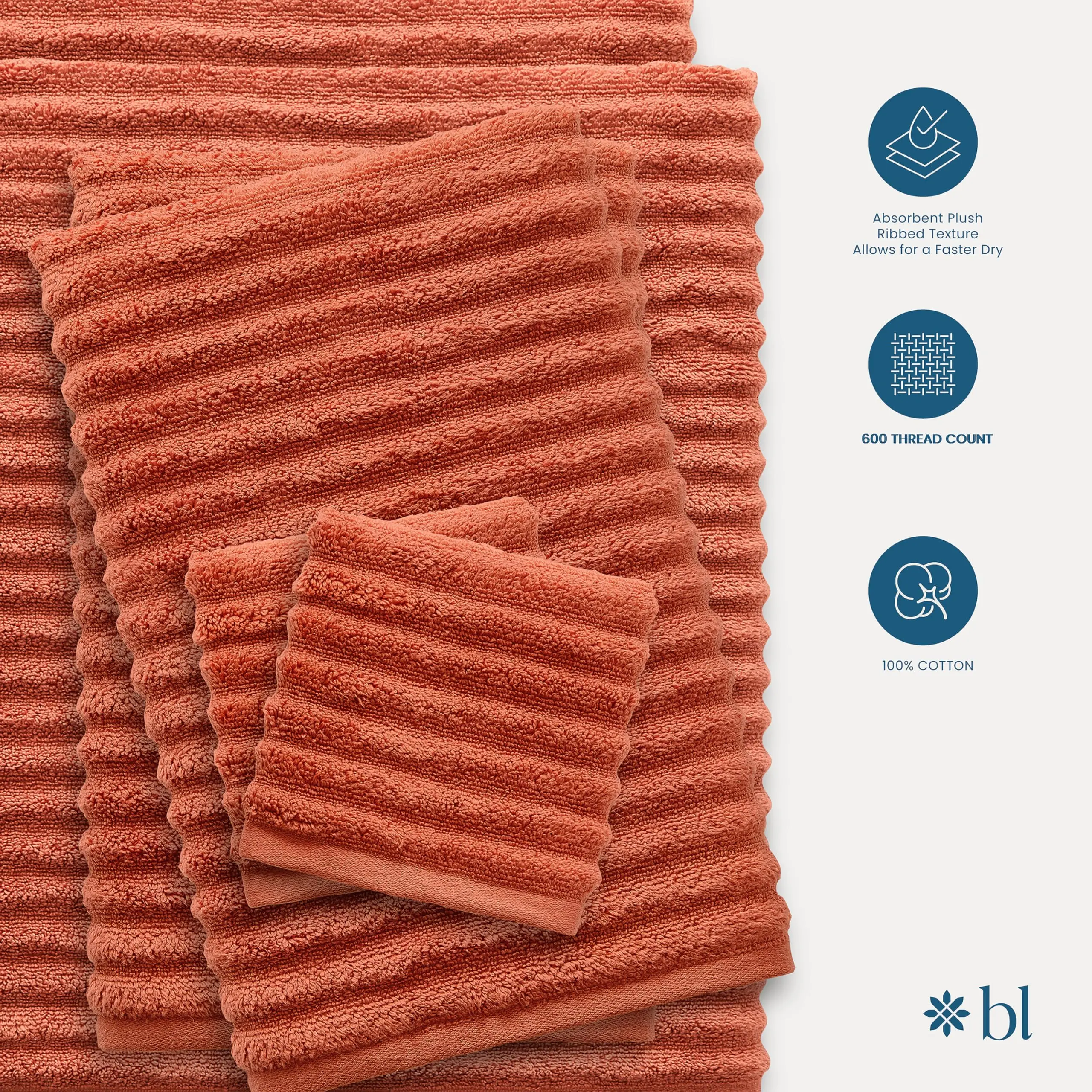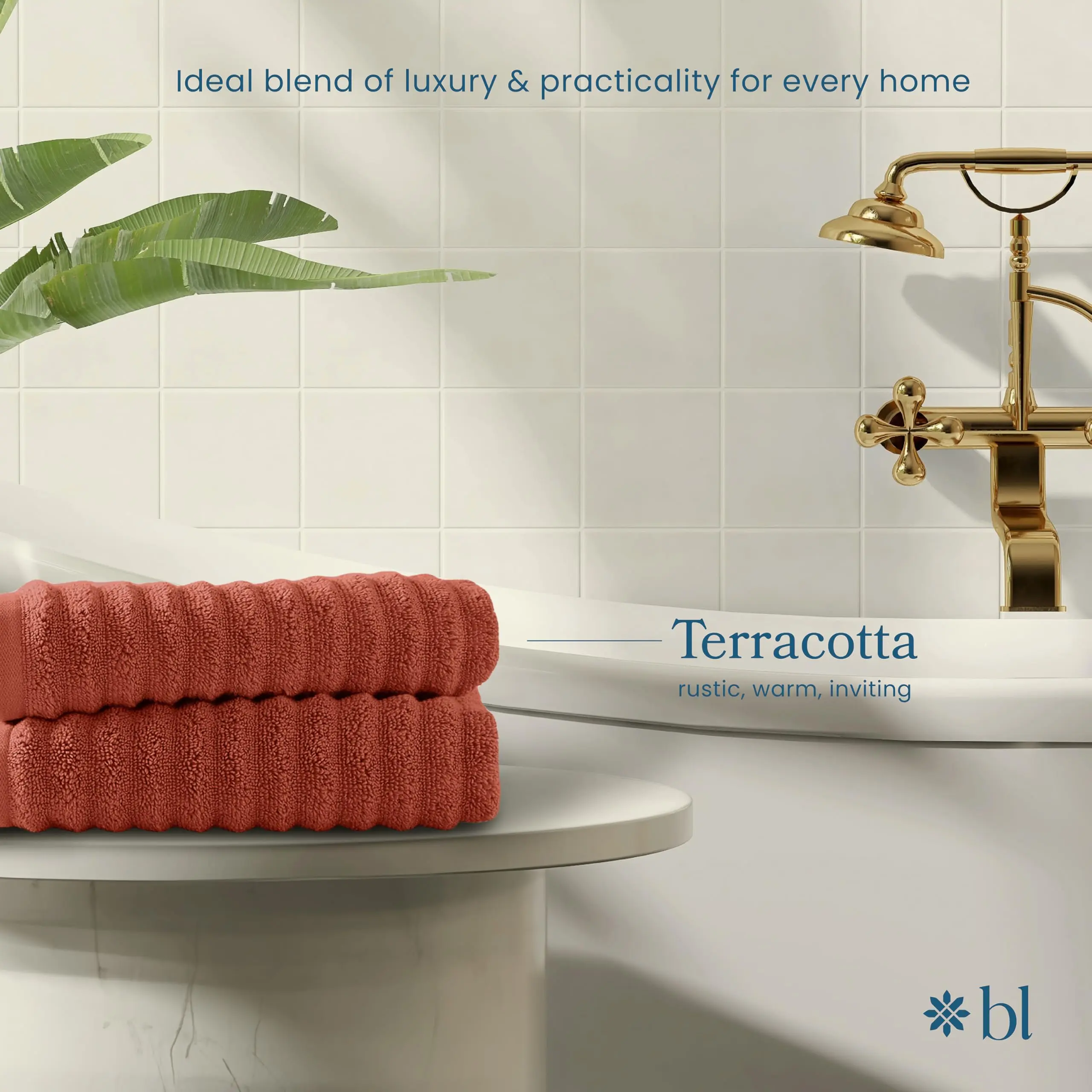 Blue Loom 100% Cotton Ribbed Hand Towels for Bathroom - Soft, Absorbent, Quick Drying, Terracotta Set of 2