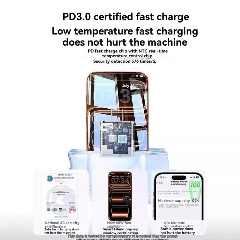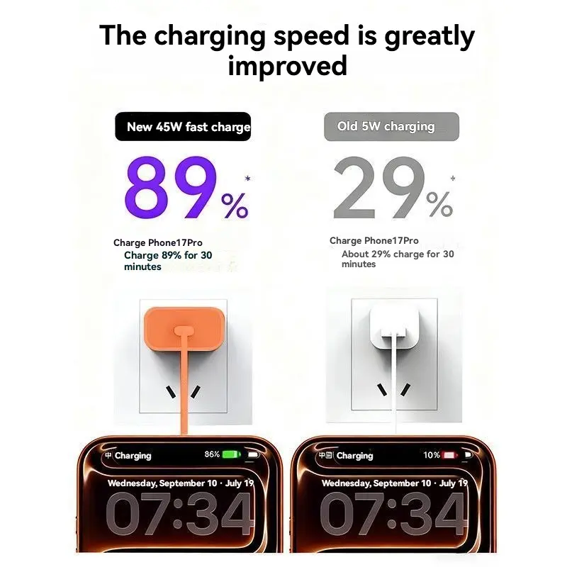 45W fast charger set compatible with iPhone 17 Pro Max; portable orange charger set for iPhone 17 Pro; charging head set for iPhone 17; convenient iPhone charger; Type‑C fast charger; 6.6 ft/3.3 ft; PD fast charging tablet set.