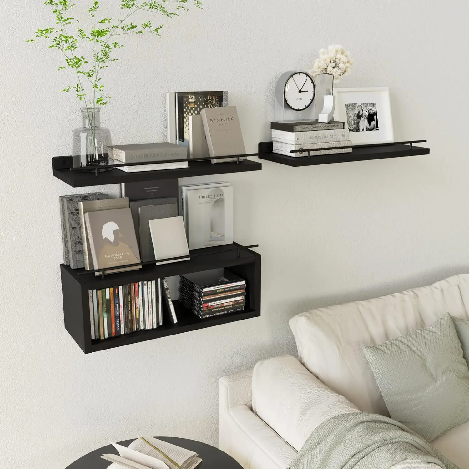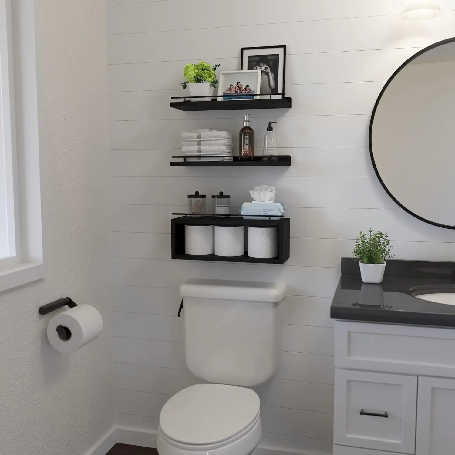 Floating Shelves for Wall with Cube Shelf, Wall Shelves with Metal Rail for Bathroom Decor, Bathroom Organizers and Storage, Over Toilet Shelves for Toilet