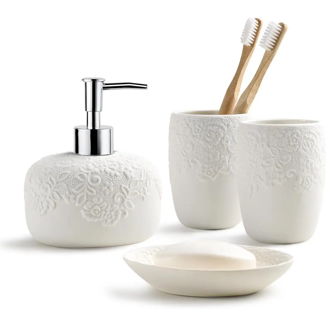 Bathroom Accessory Set Ceramic Bathroom Accessories Set, Classic Design Bathroom Accessories Sets Complete, Home Apartment Modern Bathroom Decor Vanity Countertop,