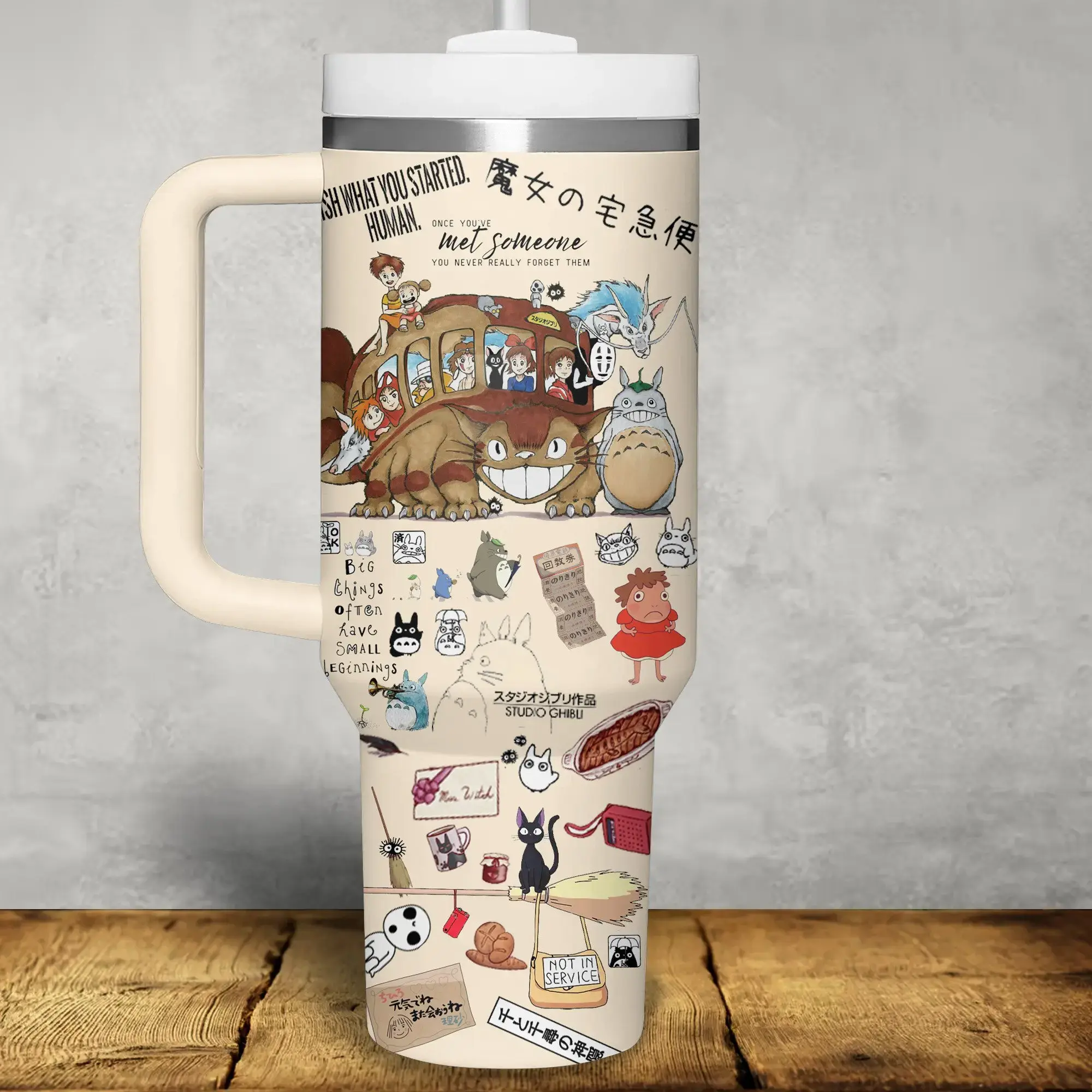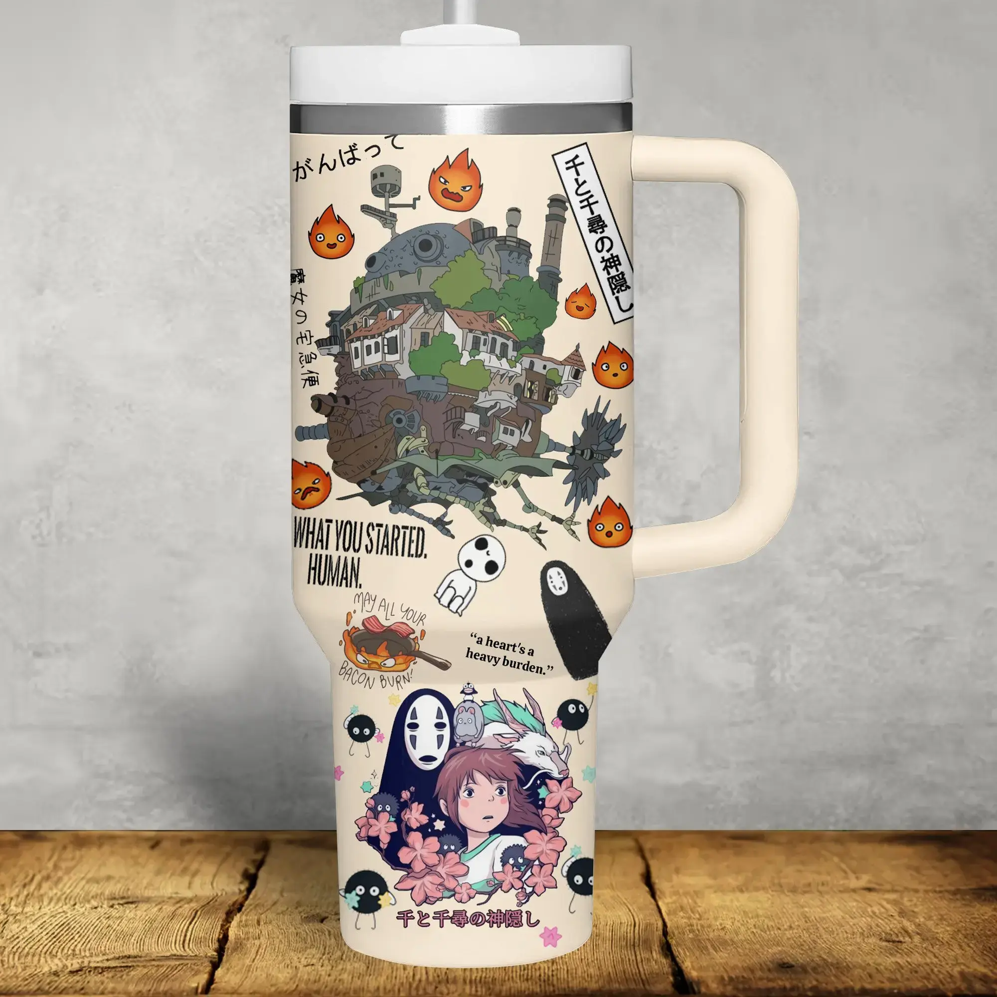 Studio Ghibli 40oz Tumbler with Handle | Totoro, Howl's Moving Castle & Spirited Away Anime Travel Mug with Straw | Perfect Fan Gift Merch Idea