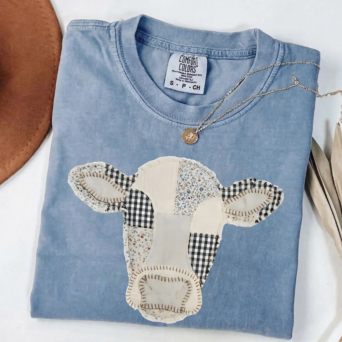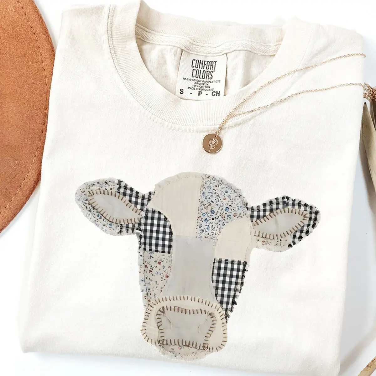 Comfort Colors Patchwork Cow T-Shirt – Quilted Farm Animal Design, Rustic Cottagecore Style, Country Aesthetic, Streetwear Style Unisex Fits Cotton Comfort Casual Shirt With Cute Vintage Farm Life Look For Everyday Wear