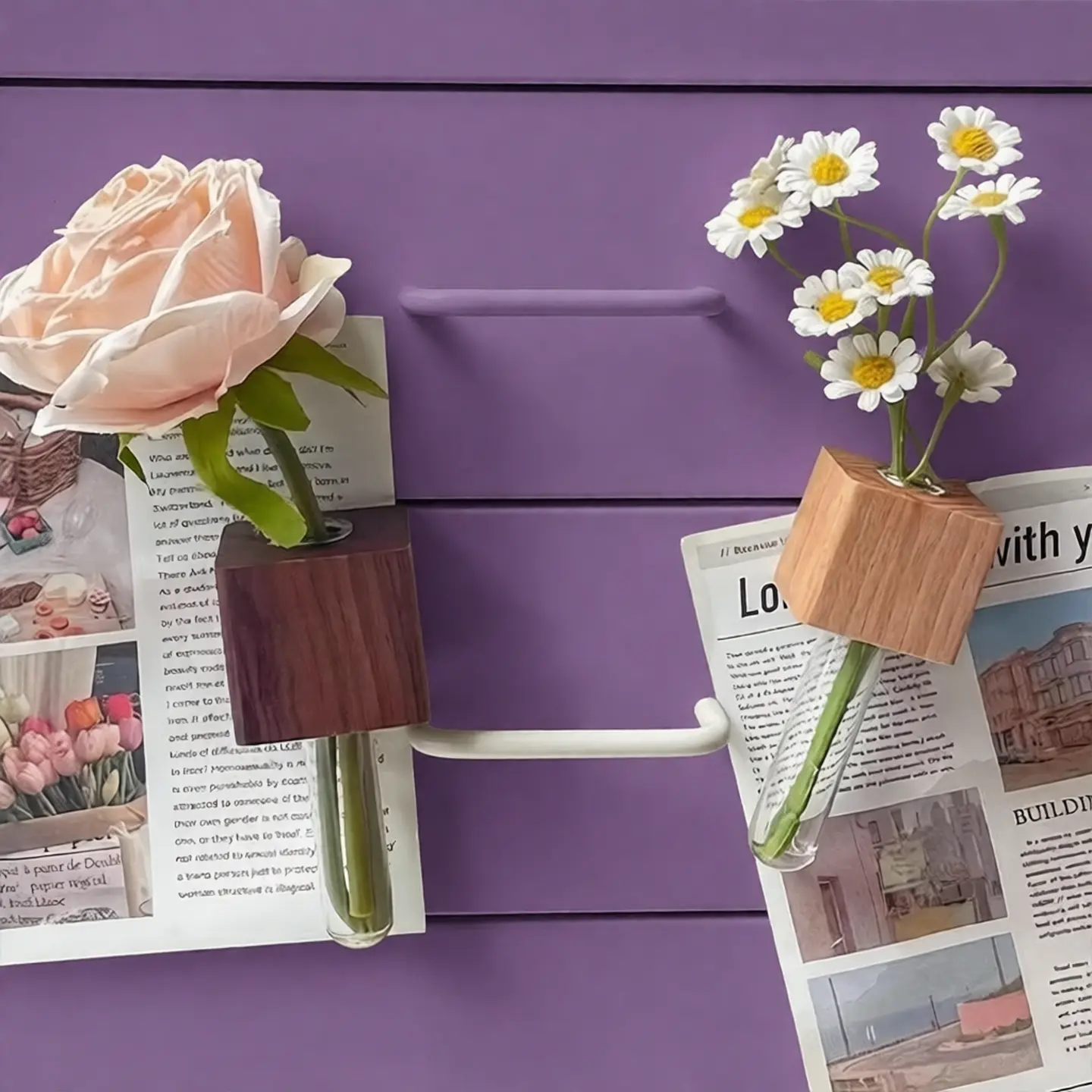 Elevate your home decor with this creative wooden test tube flower vase that doubles as a strong fridge magnet, blending functionality with rustic charm. Crafted from high-quality solid wood, it exudes a natural, warm texture and eco-friendly elegance, each piece boasting unique artisanal details that add a touch of sophistication to any space. The clear test tube design is perfect for hydroponic plants, fresh flower stems, or dried bouquets, allowing you to bring a breath of nature into your kitchen, office, or living area without taking up extra counter space.