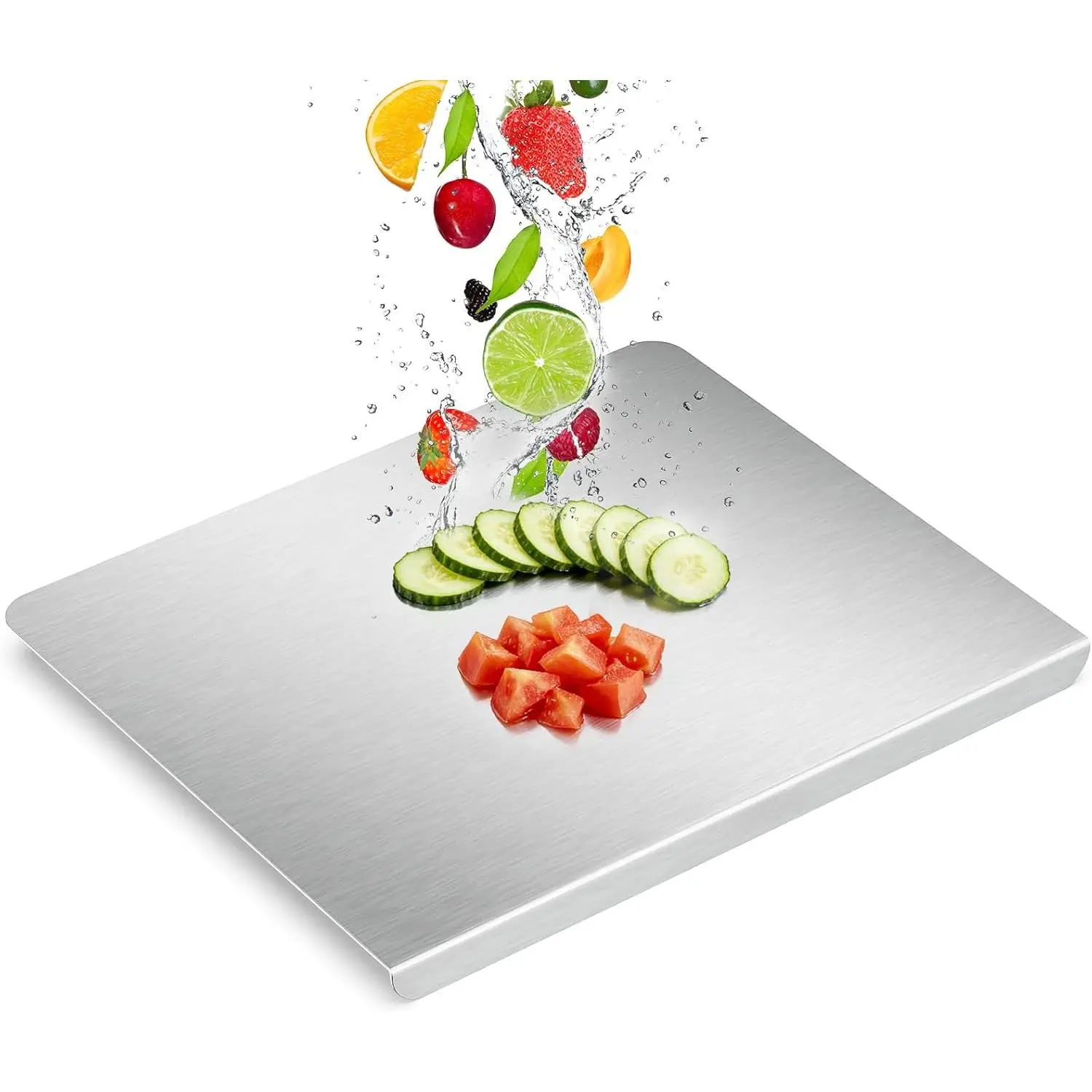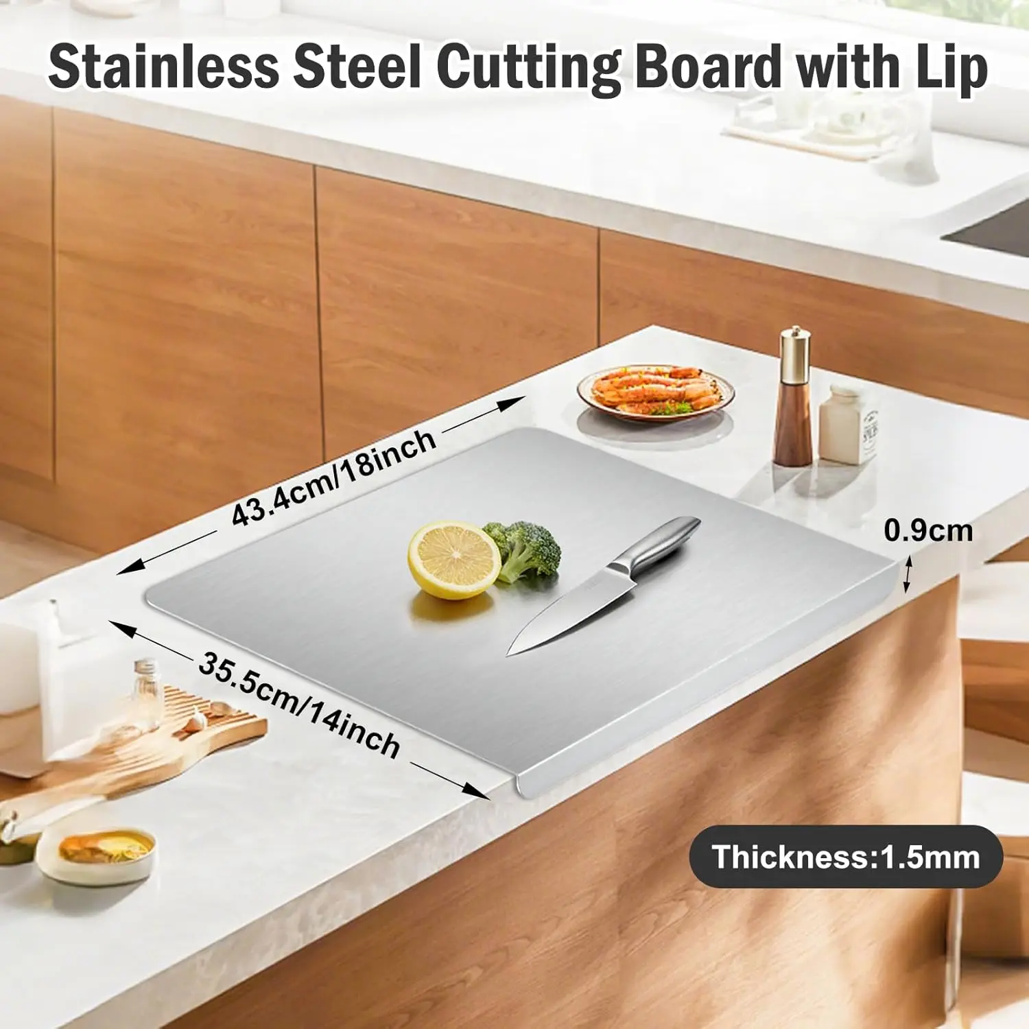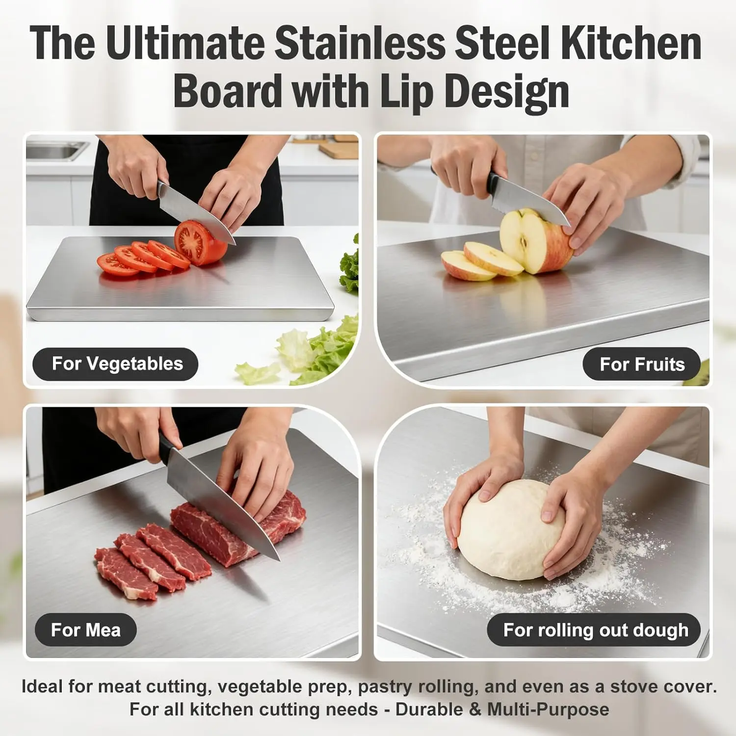 Stainless Steel Cutting Board with Lip, Large Metal Chopping Board with Counter Edge, Dishwasher Safe Non-Slip Pastry Board for Meat Vegetables & Baking(18x14)