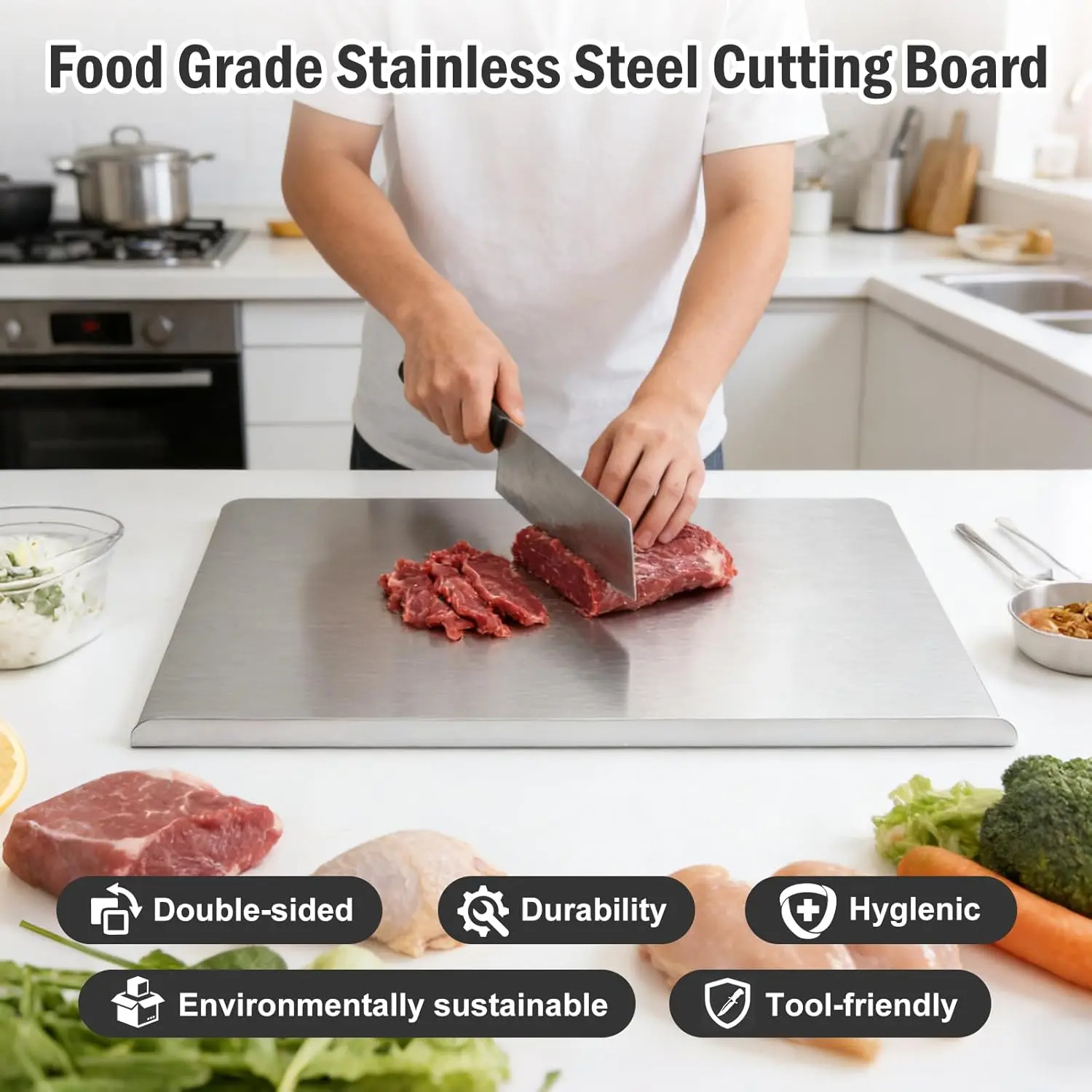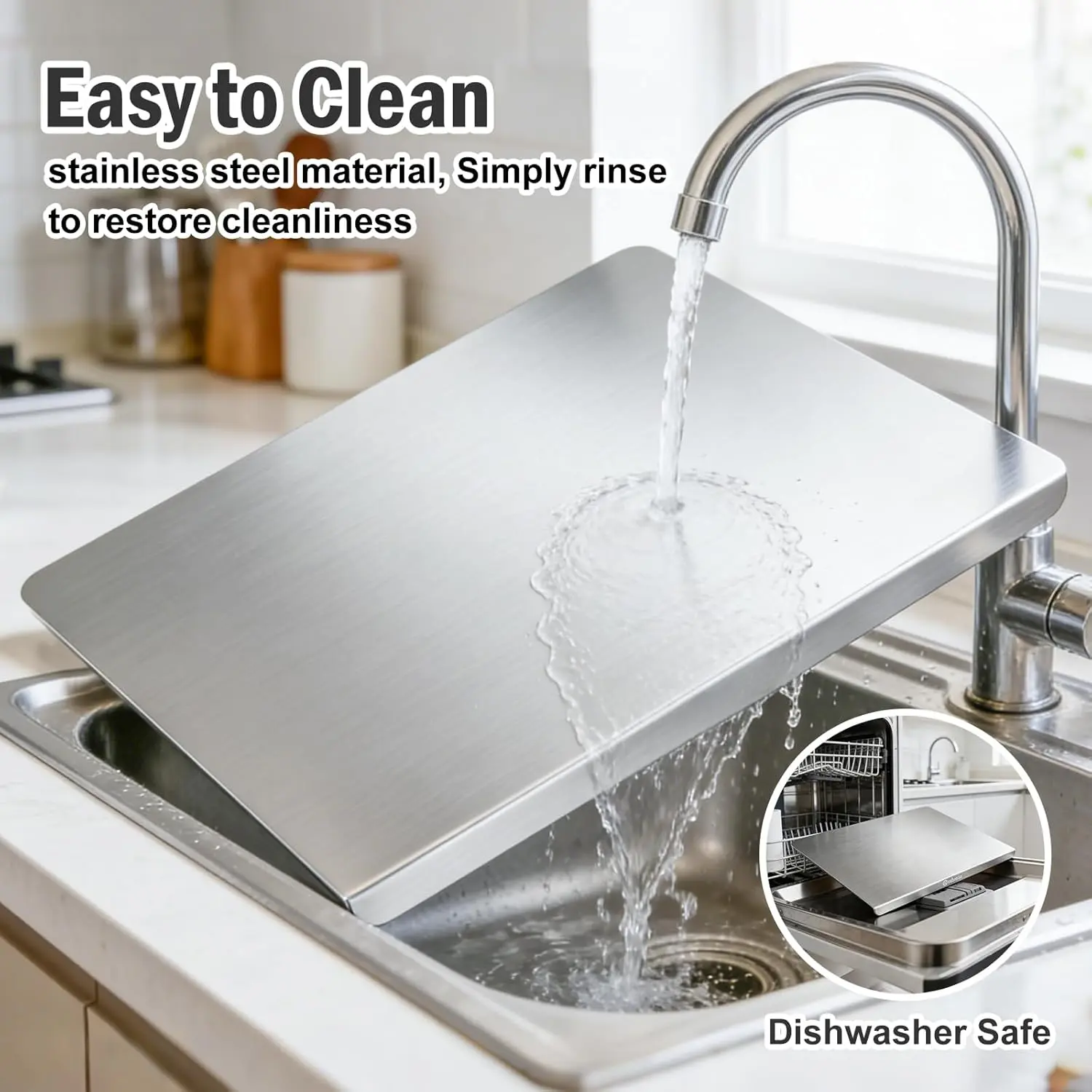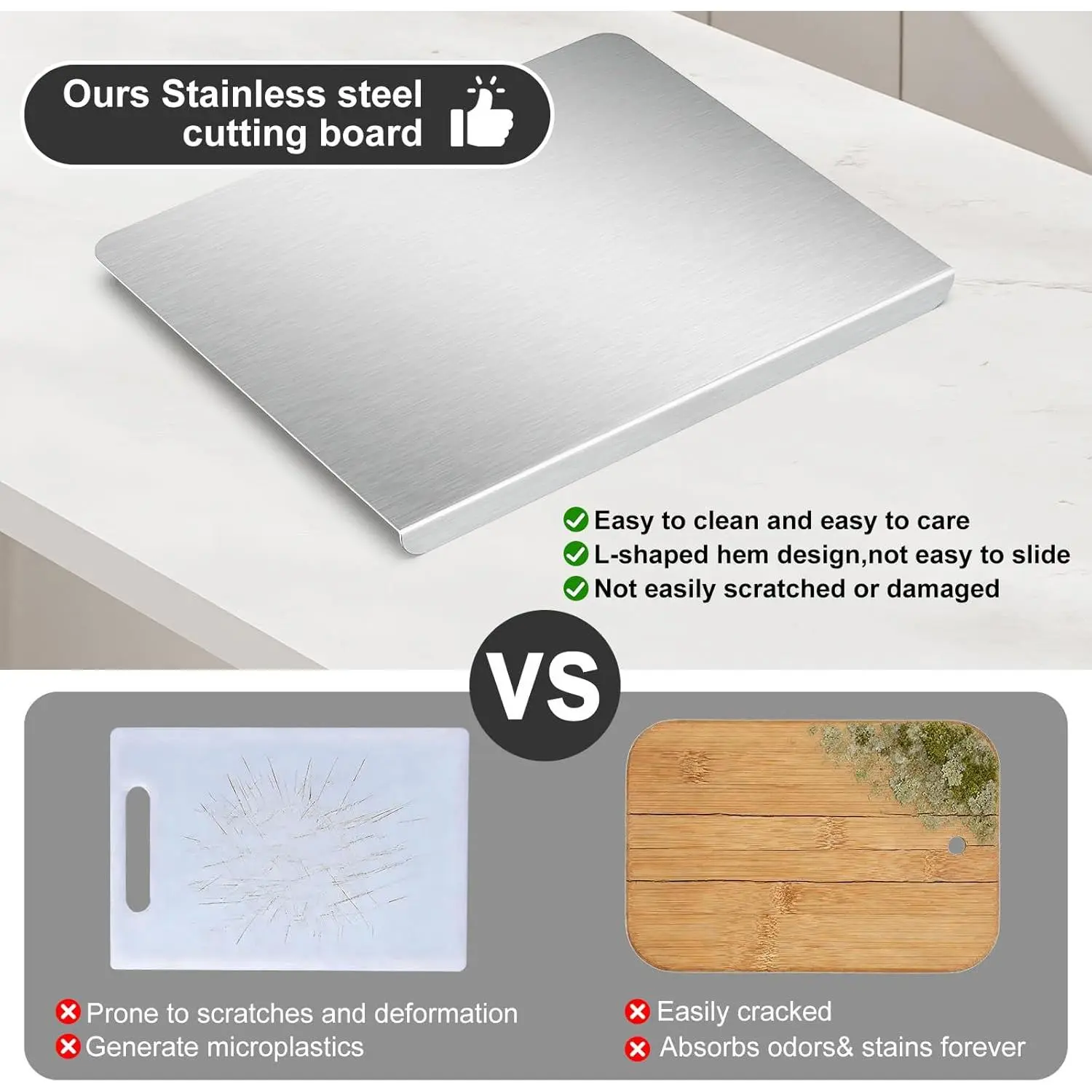 Stainless Steel Cutting Board with Lip, Large Metal Chopping Board with Counter Edge, Dishwasher Safe Non-Slip Pastry Board for Meat Vegetables & Baking(18x14)
