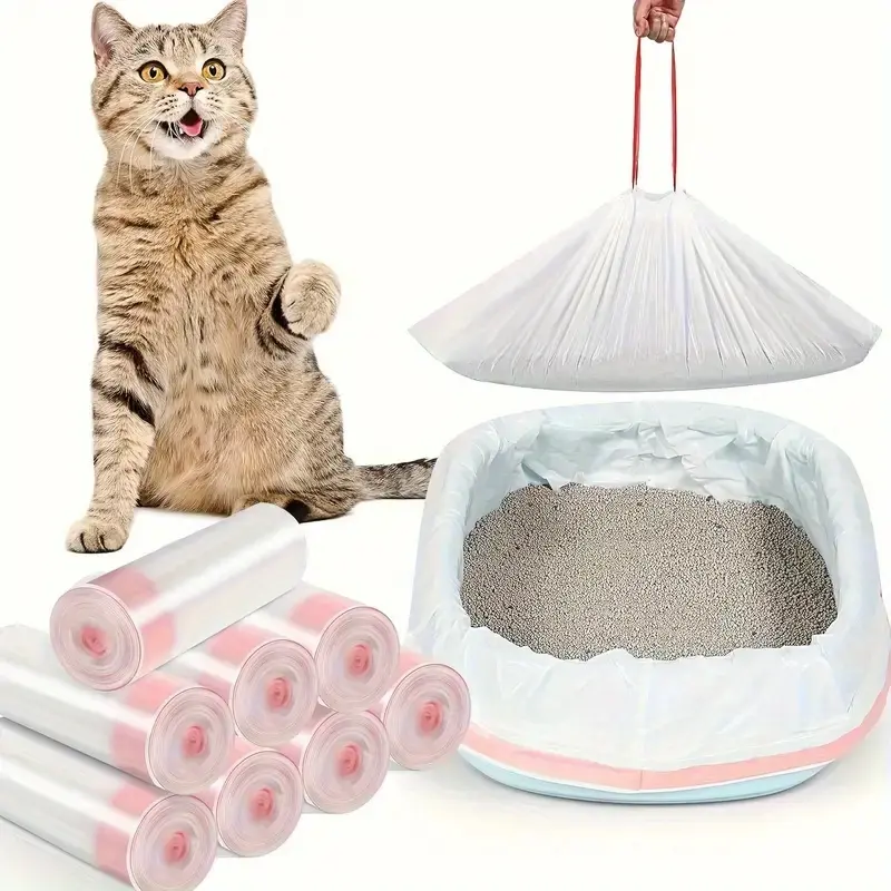 Heavy Duty Leak-Proof Cat Litter Box Liners with Drawstring Extra Large, Tear & Odor Resistant Fits Automatic Litter Boxes For Indoor & Outdoor Use