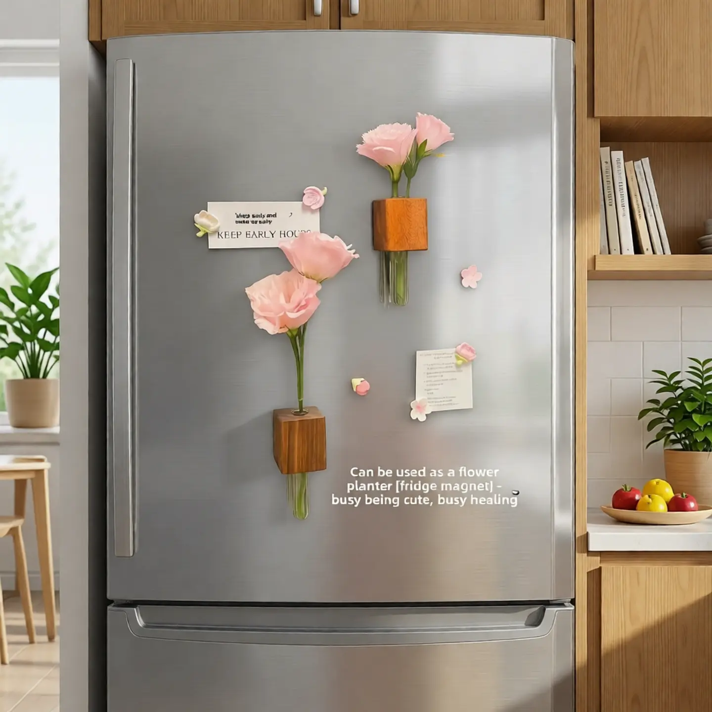 Equipped with a powerful built-in magnet, this versatile piece securely attaches to any magnetic surface—refrigerators, metal cabinets, or lockers—without leaving scratches or marks, enabling easy repositioning whenever you want to refresh your decor. Beyond being a stylish flower holder, it also functions as a practical fridge magnet, ideal for fixing notes, reminders, photos, or
