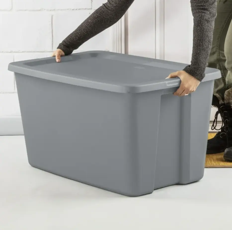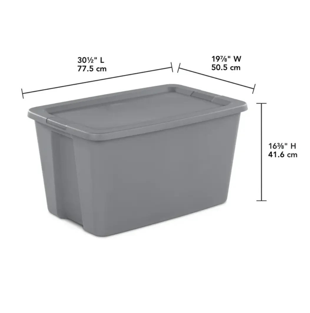 ·Sterilite 30 Gallon Tote, Plastic Storage Bin with Snap-on Lid, Gray