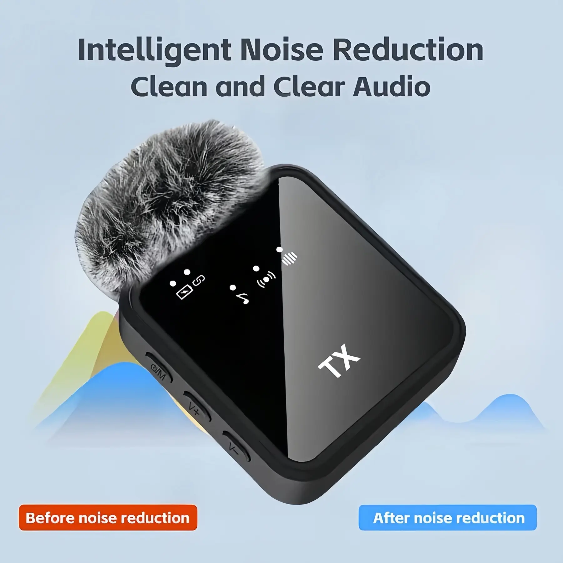 Smart Noise Cancellation - Professional-Grade Noise Reduction: Equipped with intelligent noise reduction chips and high-density spray-proof sponge. - Clear Audio: Cuts off noise interference and improves audio quality. - Omni-Directional: Provides the best clear timbre.