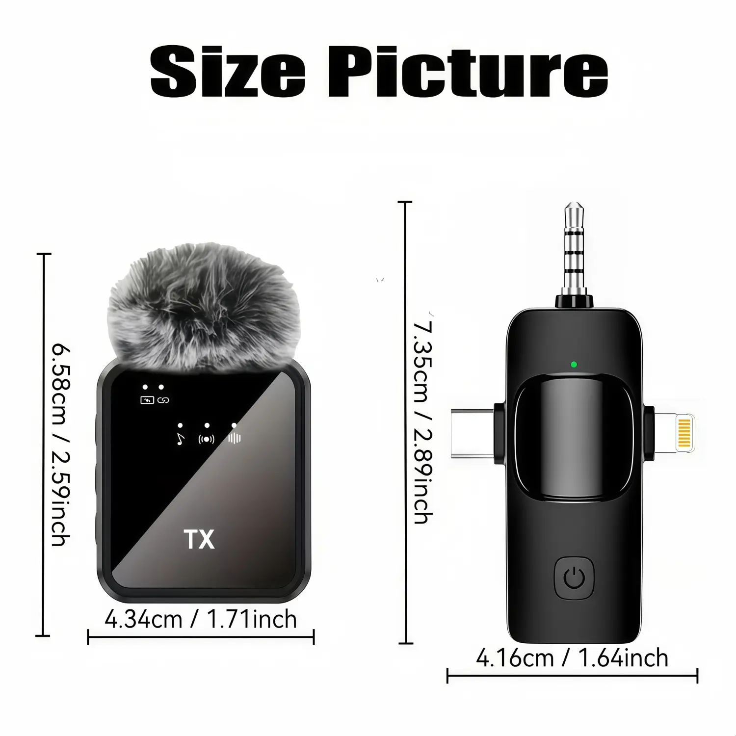 Rechargeable Transmitter and Receiver - Large Capacity Battery: Provides more than 7 hours of battery life. - Low Power Chip: Supports charging while recording. - Type-C Charging Cable: Allows charging of the receiver and phone simultaneously.
