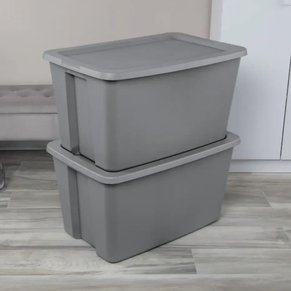 ·Sterilite 30 Gallon Tote, Plastic Storage Bin with Snap-on Lid, Gray