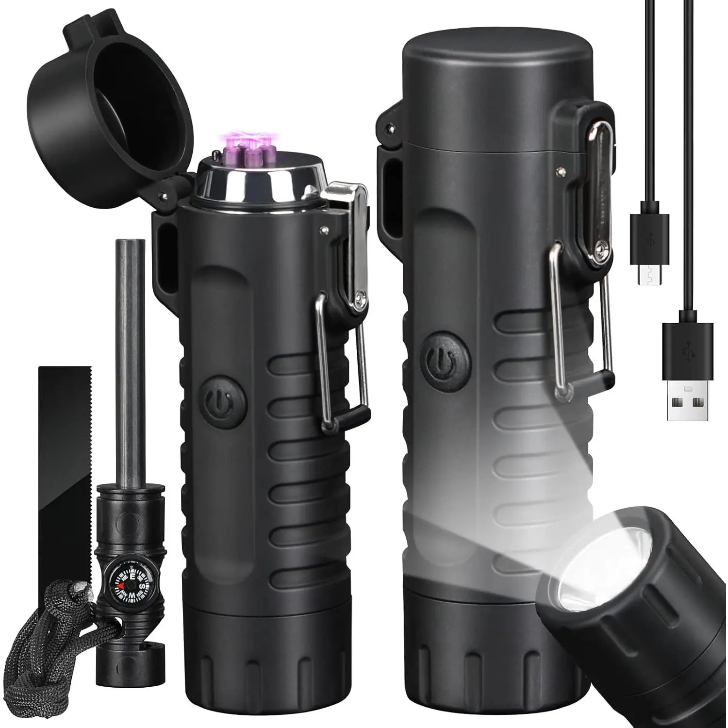 Dual Arc Lighter/Plasma Lighter/Electric Lighter, equipped with a 5-in-1 multifunctional magnesium flint igniter set, powerful and complete in features, suitable for outdoor survival lighting sets such as those used for outings, camping, hiking, and exploration.It is an excellent gift for fathers, husbands, friends, and leaders