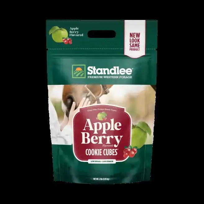 Standlee Apple Berry Cookie Cubes are grain free horse treats made with premium alfalfa, timothy grass, cranberries and infused with apple juice. These delicious, all-natural horse treats are designed to provide a nutritious reward for your horse while not unbalancing a dietary regimen.