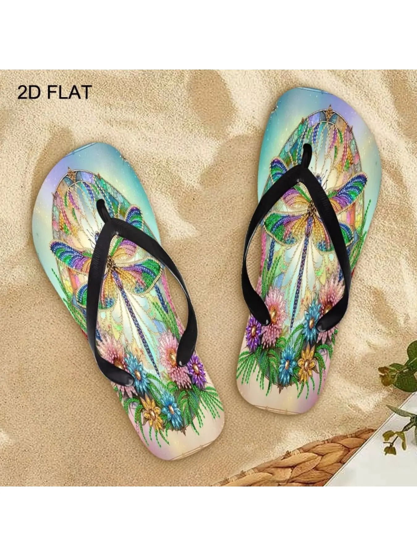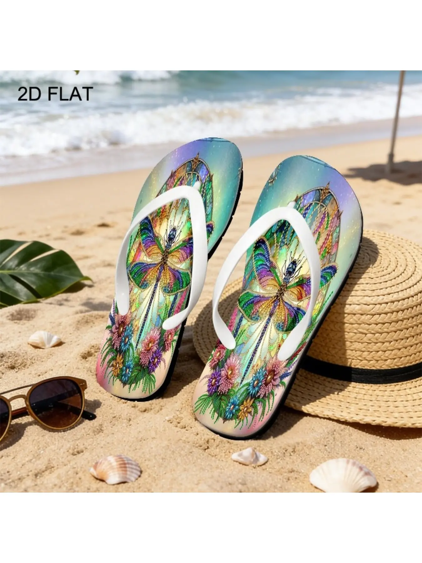 Women'S Fashion Flip Flops, Dragonfly And Floral Jeweled Design, Multiple Colors And Sizes Available, Comfortable for Daily Wear, Stylish Summer Sandals with Intricate Gem-Like Details, Trendy Ladies' Beach And Casual Shoes, Women Shoes