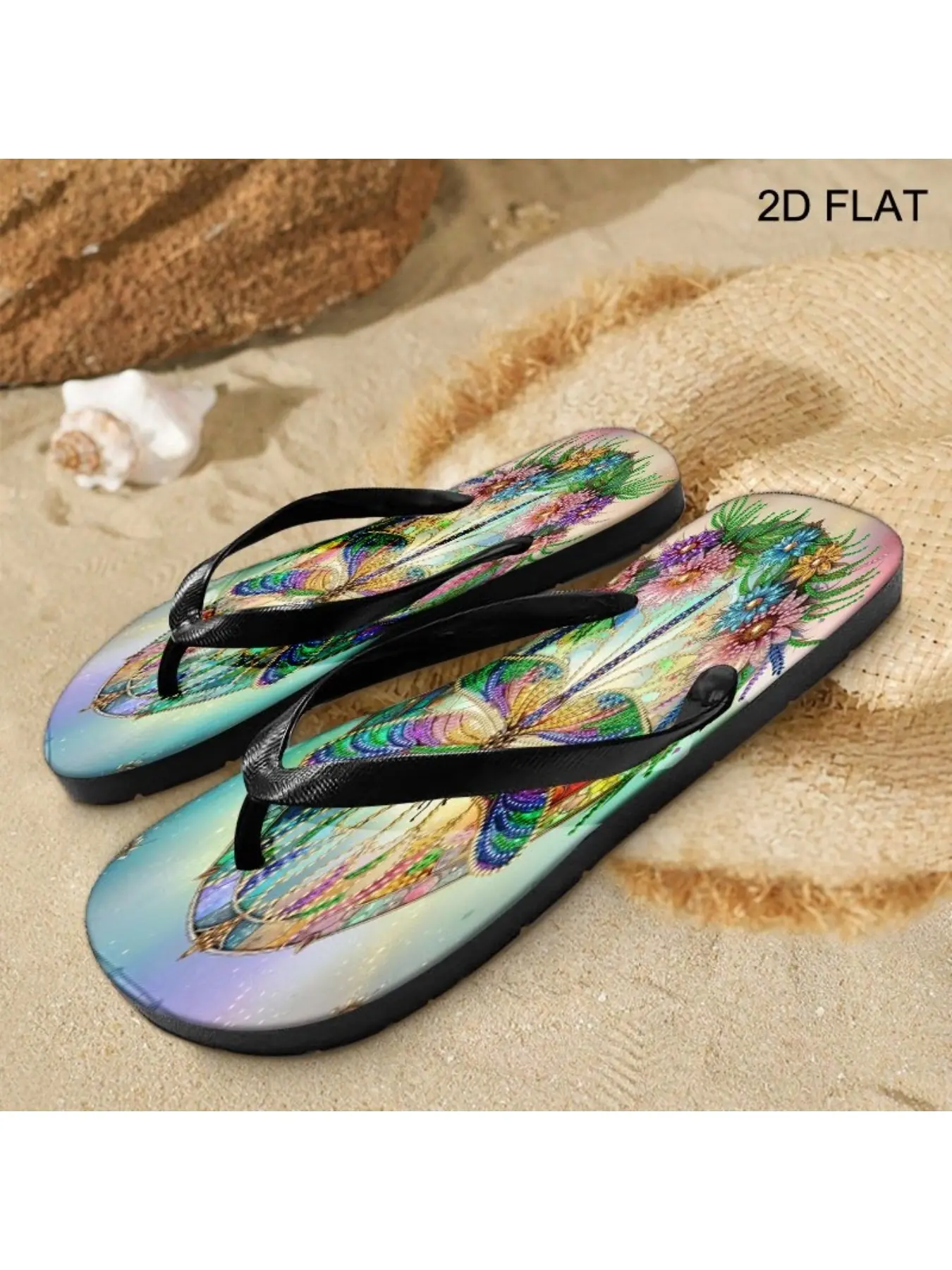 Women's Flip Flops, Artistic Chrysanthemum Print, Multiple Colors & Sizes Available, Comfortable Stylish Sandals for Daily Wear, Casual Summer Beach Shoes, Trendy Ladies Fashion Footwear, Women Shoes