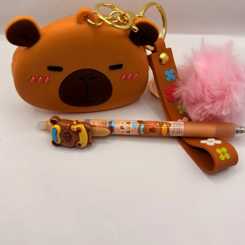 • Includes: bear pouch, cute pen, fluffy pom pom keychain & mini accessories ✨