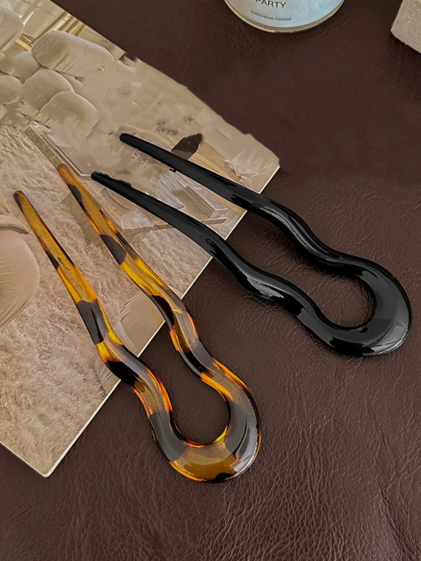 3Pcs Simple Acrylic U-Shaped Wavy Hair Pins, French Style Vintage Hair Sticks for Back Head Bun Hairstyling, Light Luxury New Chinese Style Hair Accessories