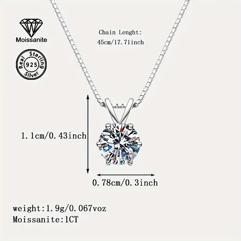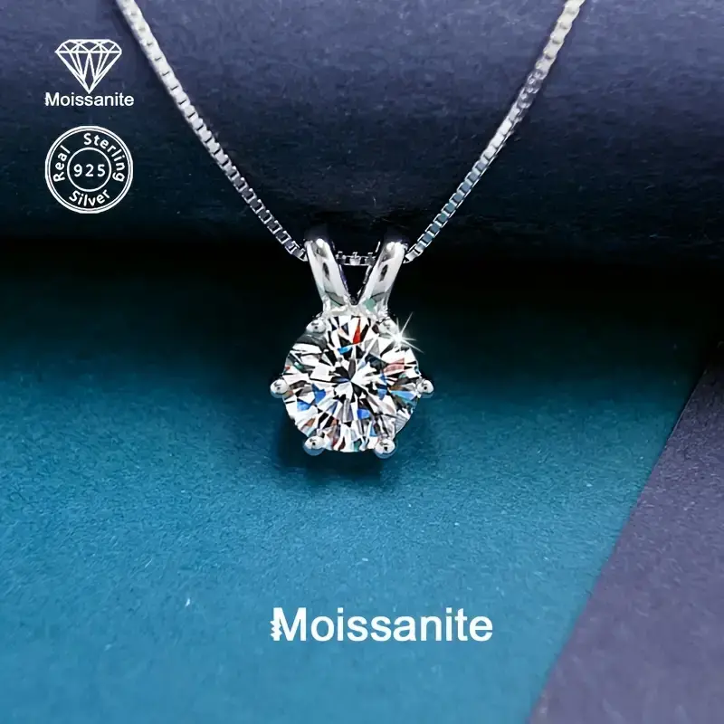 1ct Round Brilliant Moissanite Solitaire Necklace in 925 Sterling Silver