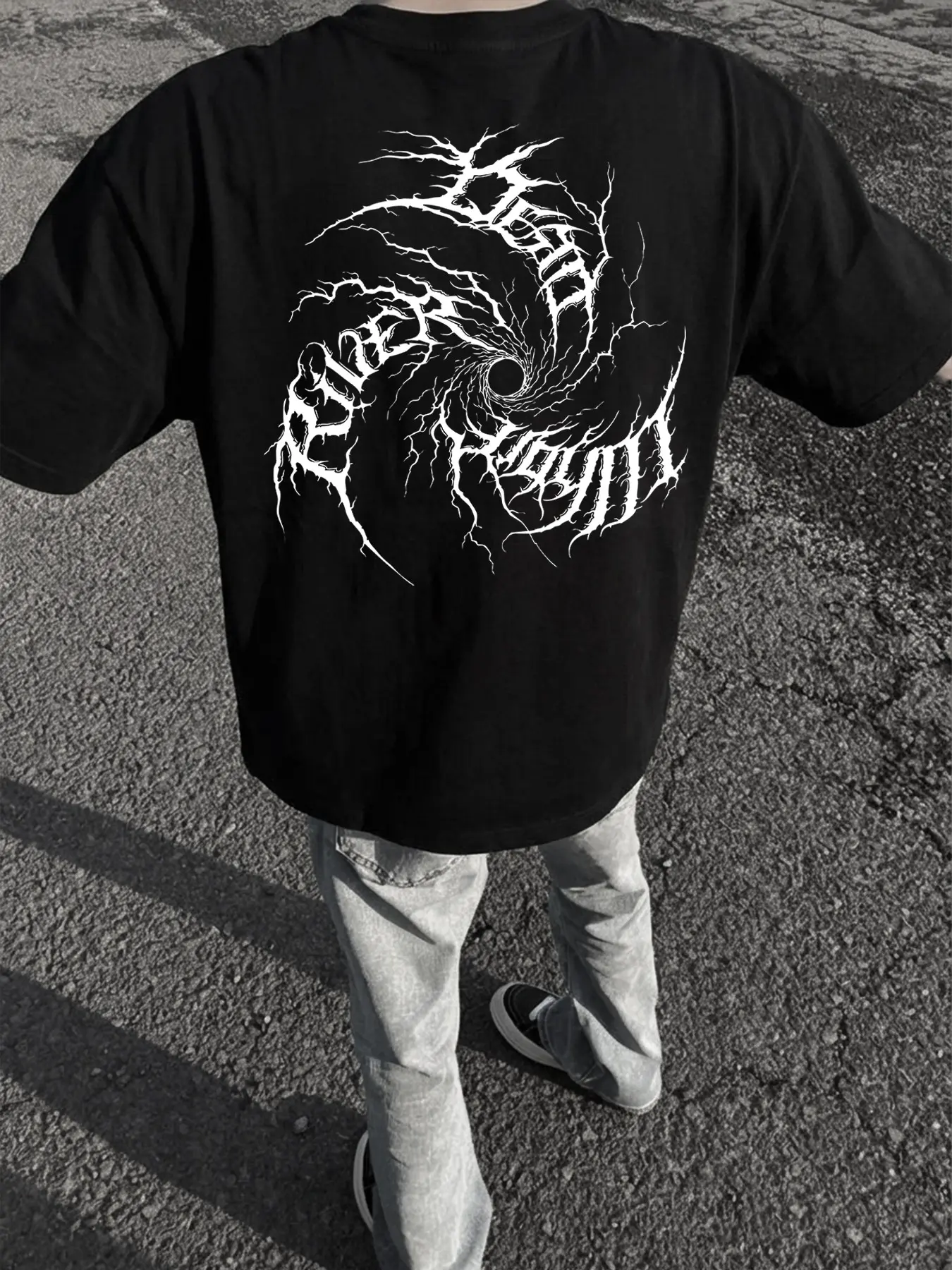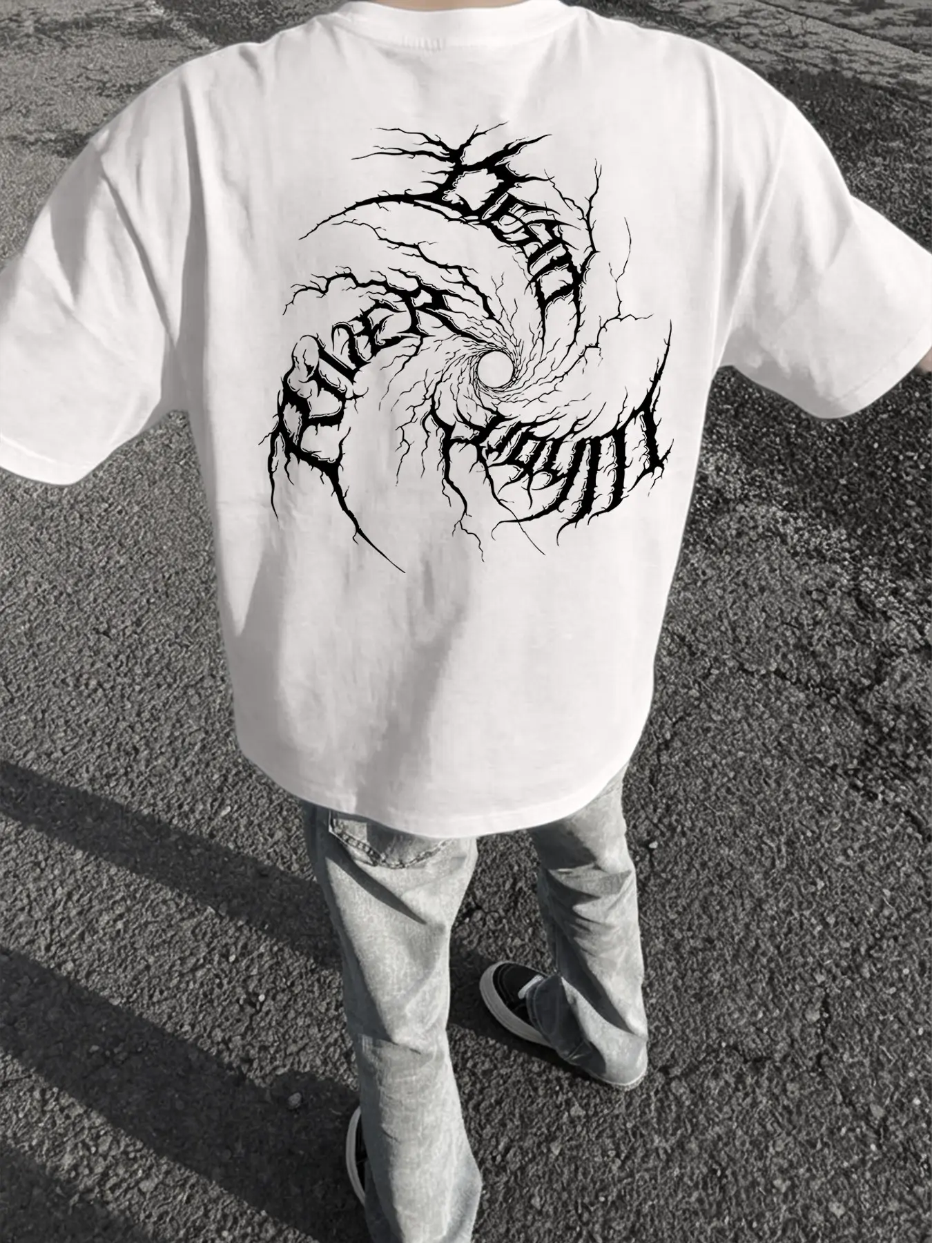 【Dark Vortex Print】: Features a unique dark vortex print, adding a bold statement to your streetwear collection.