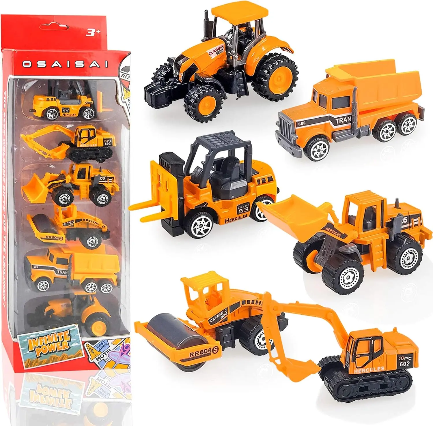 Great Value Construction Toys Sets: 6 pack diecast mini construction vehicles playset with different designs and functions. Very Realistic and Cool Look. Construction alloy plastic model set includes dump truck, roller, tractor, forklift, excavator, construction vehicle model sets. Recommend for 3 4 5 6 7 year old kids toddlers