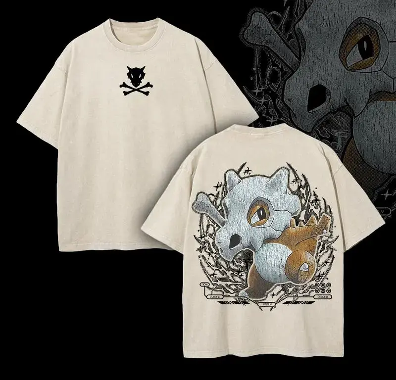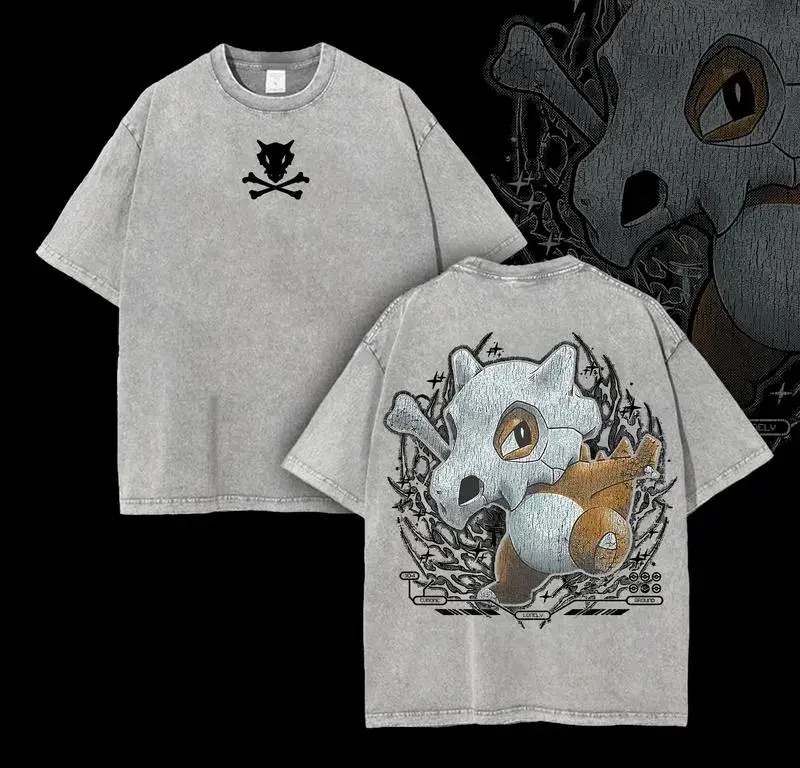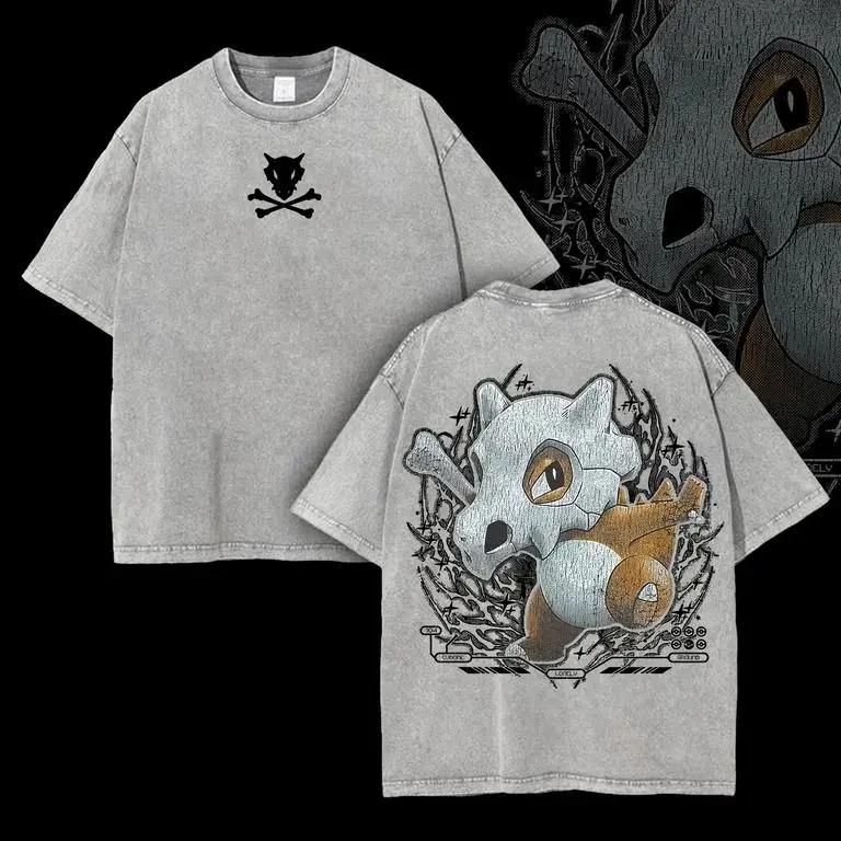 Pocket Monsters "Cubone" Vintage Unisex Oversize Anime Manga Acid Washed Heavyweight Cotton T-shirt for FansPocket Monsters "Cubone" Vintage Unisex Oversize Anime Manga Acid Washed Heavyweight Cotton T-shirt for Fans
