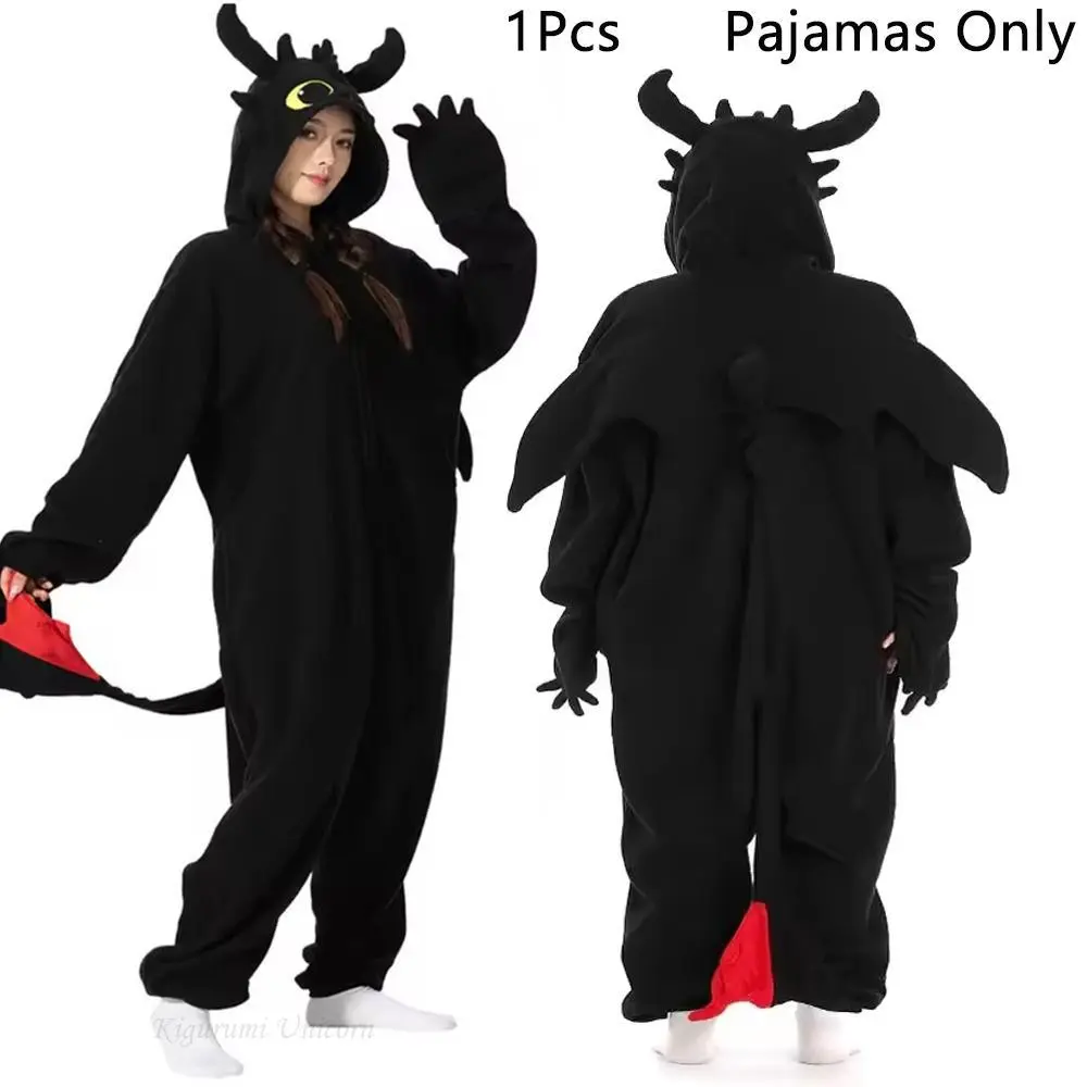 Black Toothless Dragon Onesie Pajamas Adult Kids Kigurumi Unicorn Jumpsuit Animal Pijamas Train Halloween Cosplay Winter Slipper