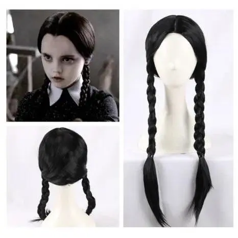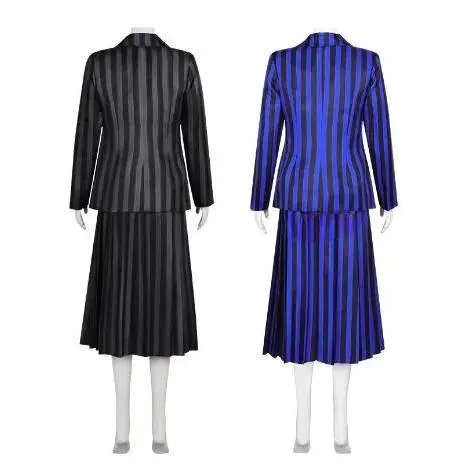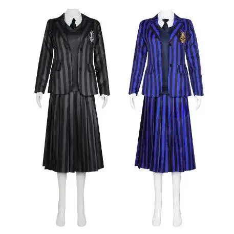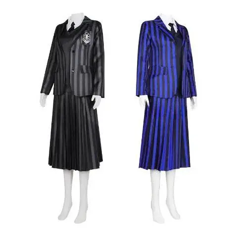 The Addams Family Wednesday Cosplay Costume Girl School Black Uniforms Suit Dress Woman Halloween Party Clothes Wig