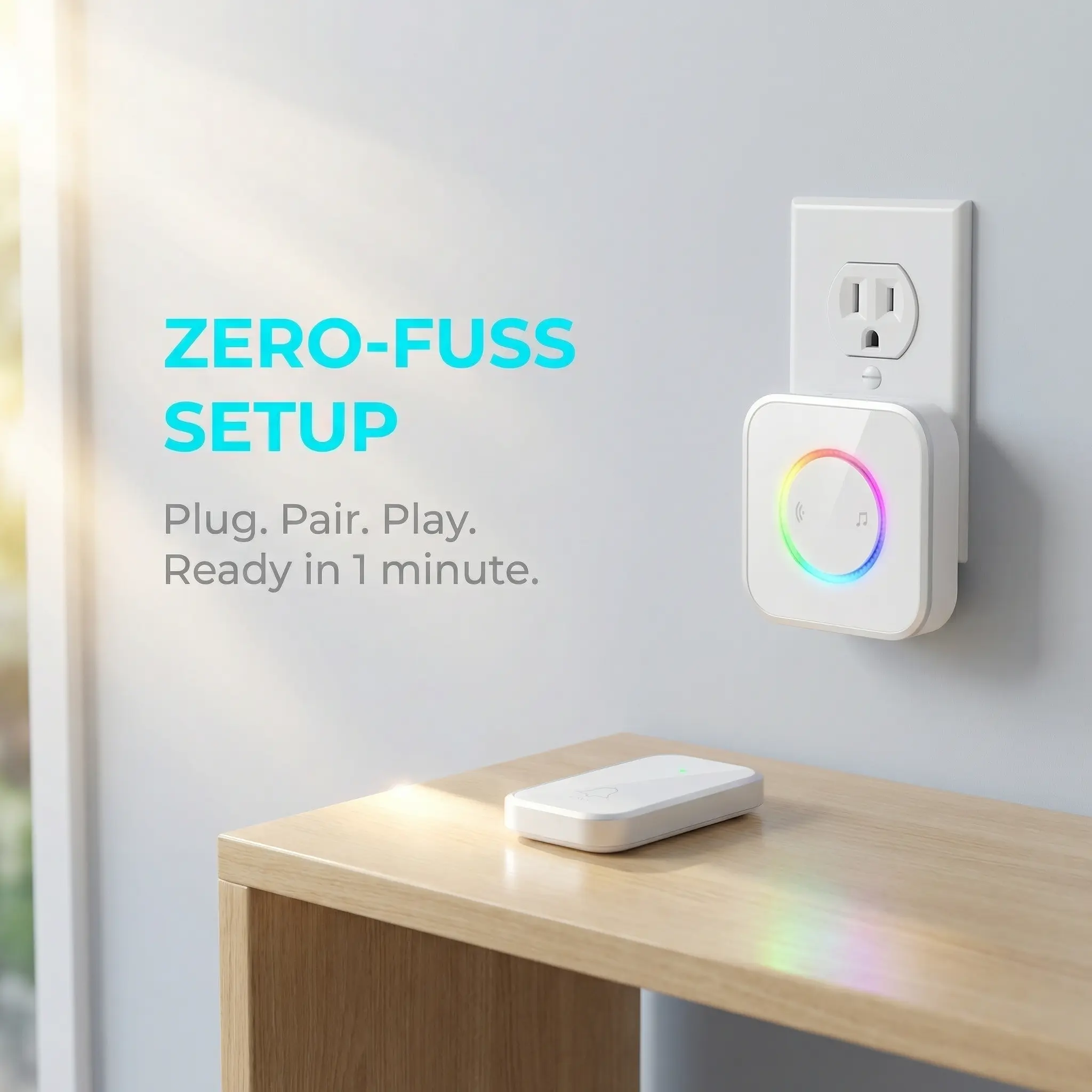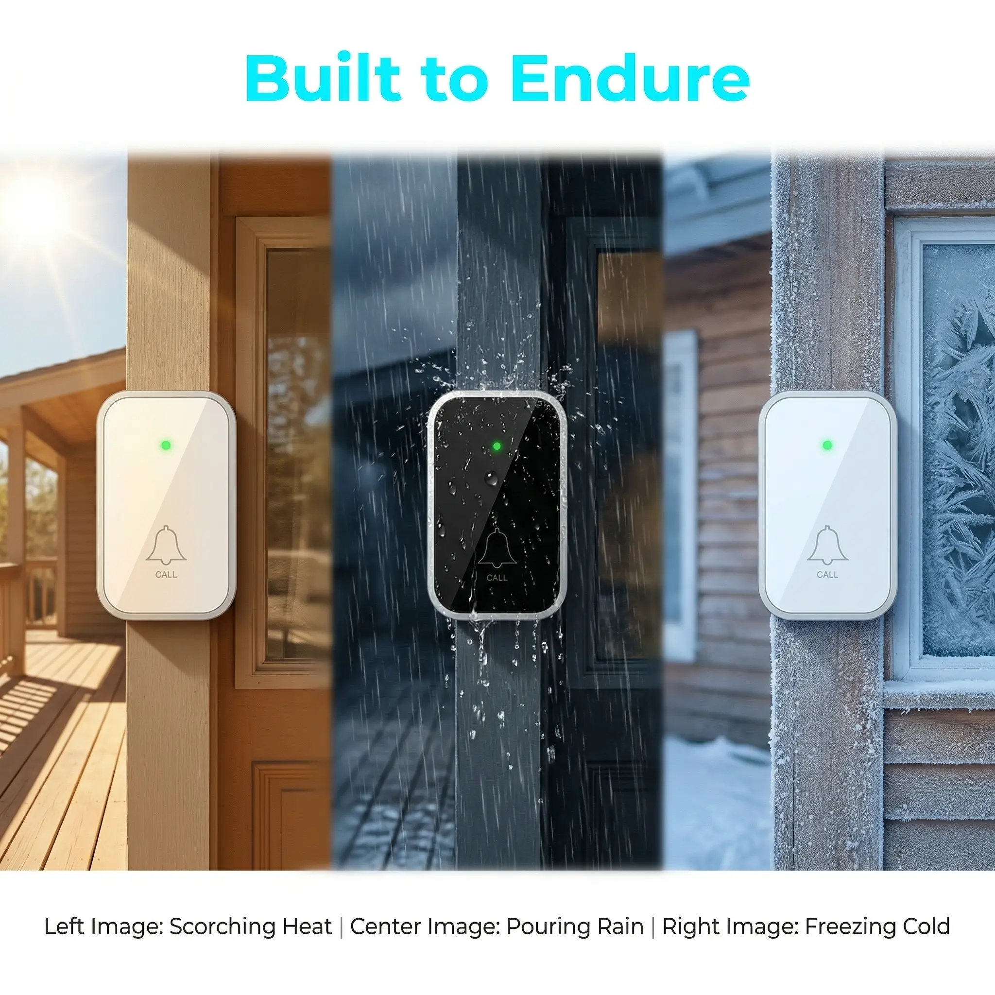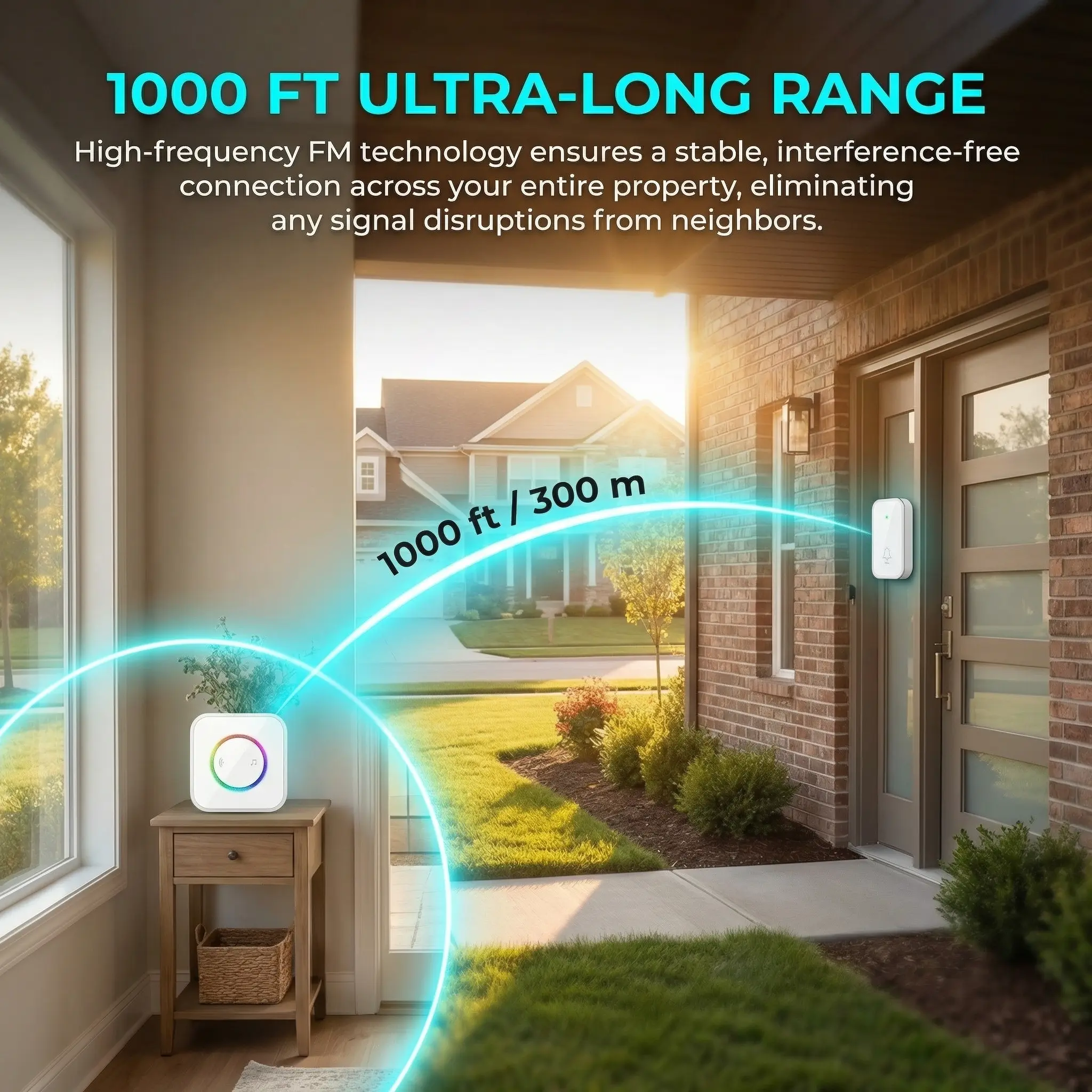 Plug-and-Play Convenience Pre-paired at the factory, this product requires no wiring or professional installation. Simply plug the receiver into a power outlet (takes about 1 minute) for instant operation, delivering true zero-complexity setup. Long-Range Anti-Interference Sensing Leveraging high-frequency FM technology and precise one-to-one signal pairing, it achieves up to 1,000 feet (~300 meters) ultra-long-range detection in unobstructed environments, completely eliminating neighbor signal interference. Smart Chimes & Flexible Grouping Features 45 pleasant chime tones (including holiday themes) with 4-level volume adjustment. All-Weather Durability & Energy Efficiency Constructed with flame-retardant ABS housing, operational from -30°C to 70°C extremes. IP44-rated dust/water resistance. Optimized circuitry ensures zero standby power consumption for transmitters, with battery life extending 2 years (uses 12V27A battery). Precision Engineering & Warranty Combines industrial aesthetics and modern design. Manufactured through fully automated precision production lines under strict QC standards. Backed by professional after-sales support (contact us promptly for troubleshooting solutions).