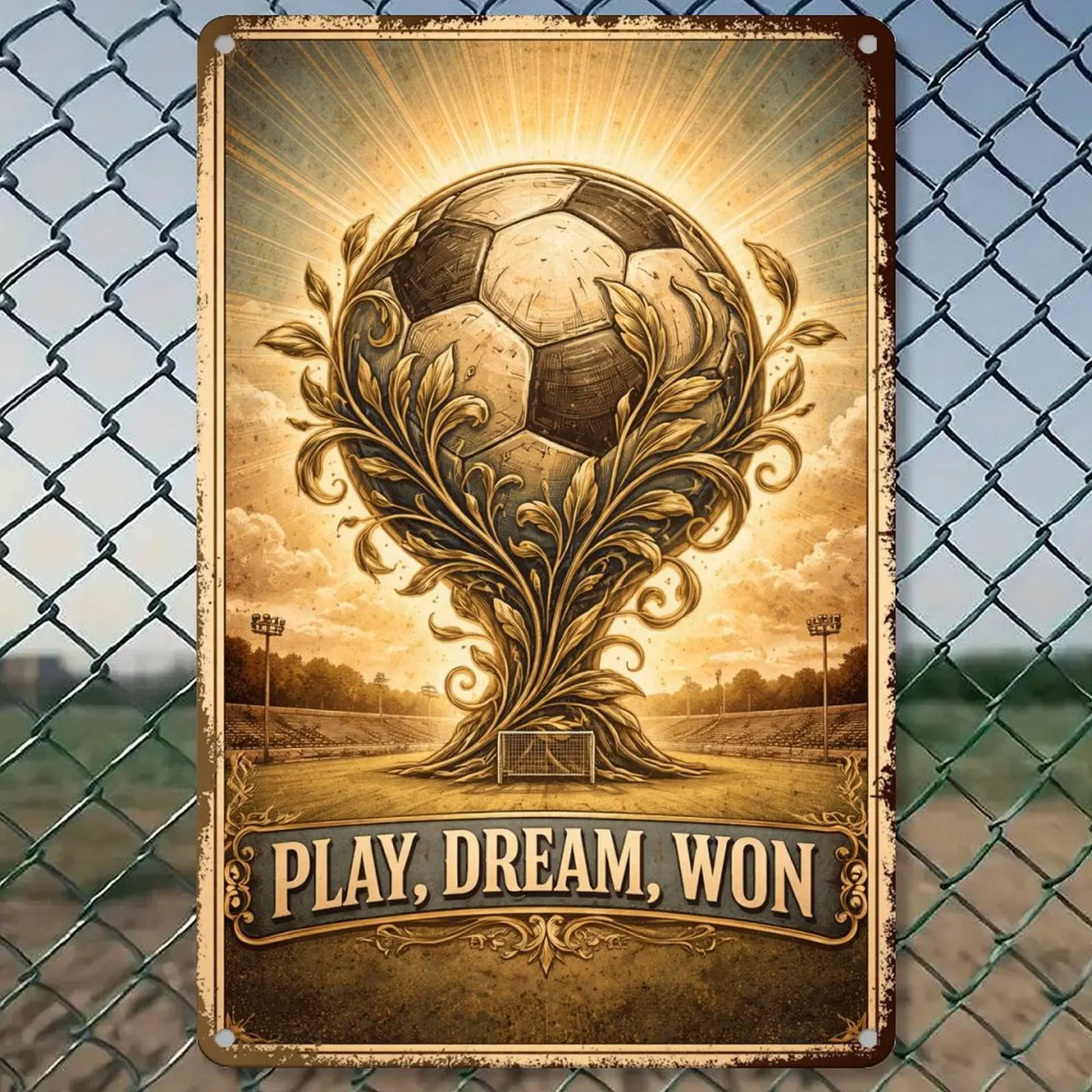 This poster is a must-have for soccer lovers. Its retro design and inspiring message make it a standout piece. Hang it up and let the spirit of the game fill your space. Perfect for commemorating your love for soccer in a timeless way.