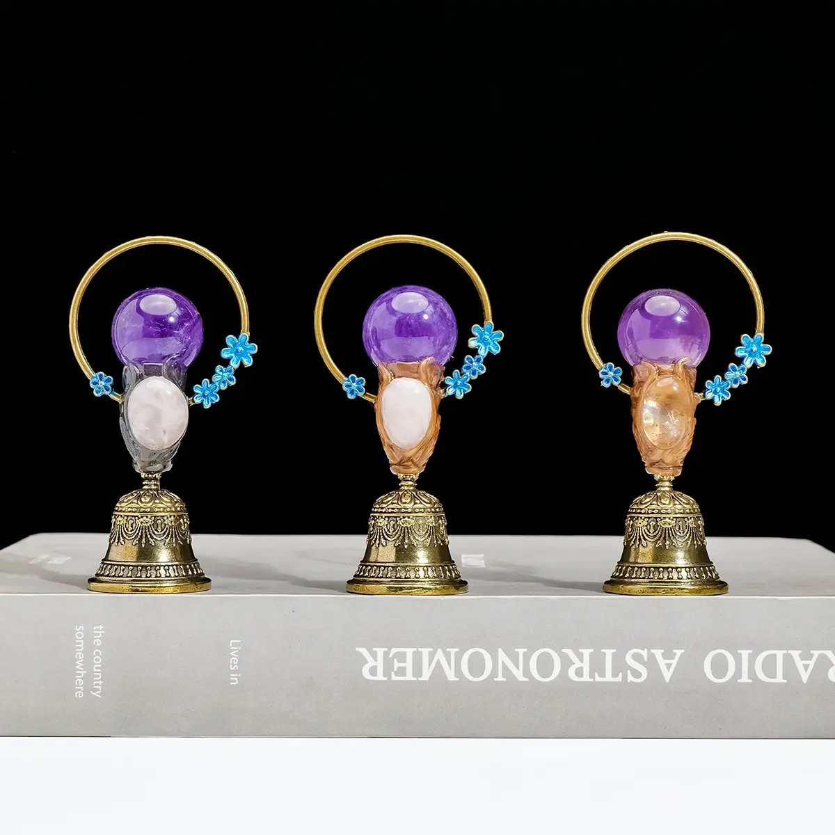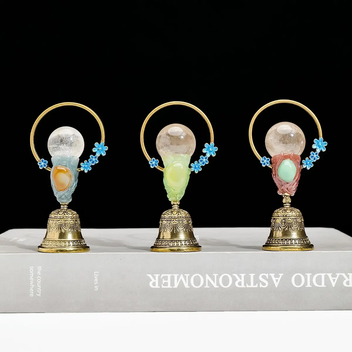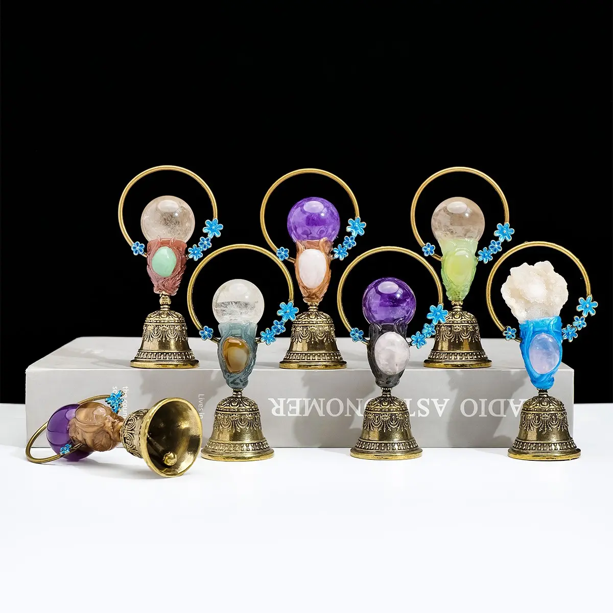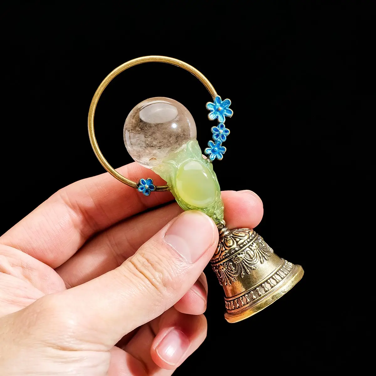 【Feng Shui Healing】: Enhance your home's energy with this natural crystal ball brass hand bell, perfect for healing purposes.