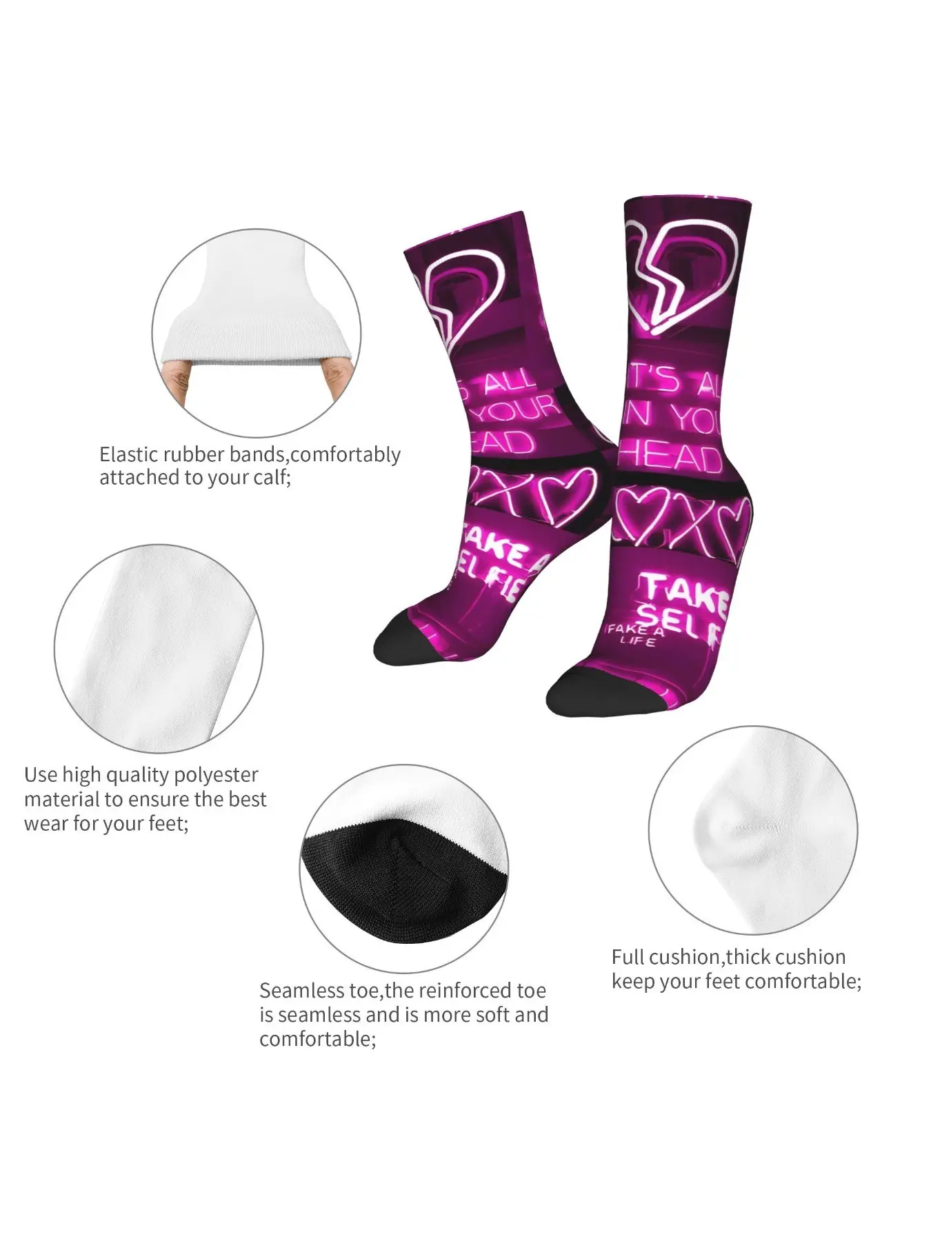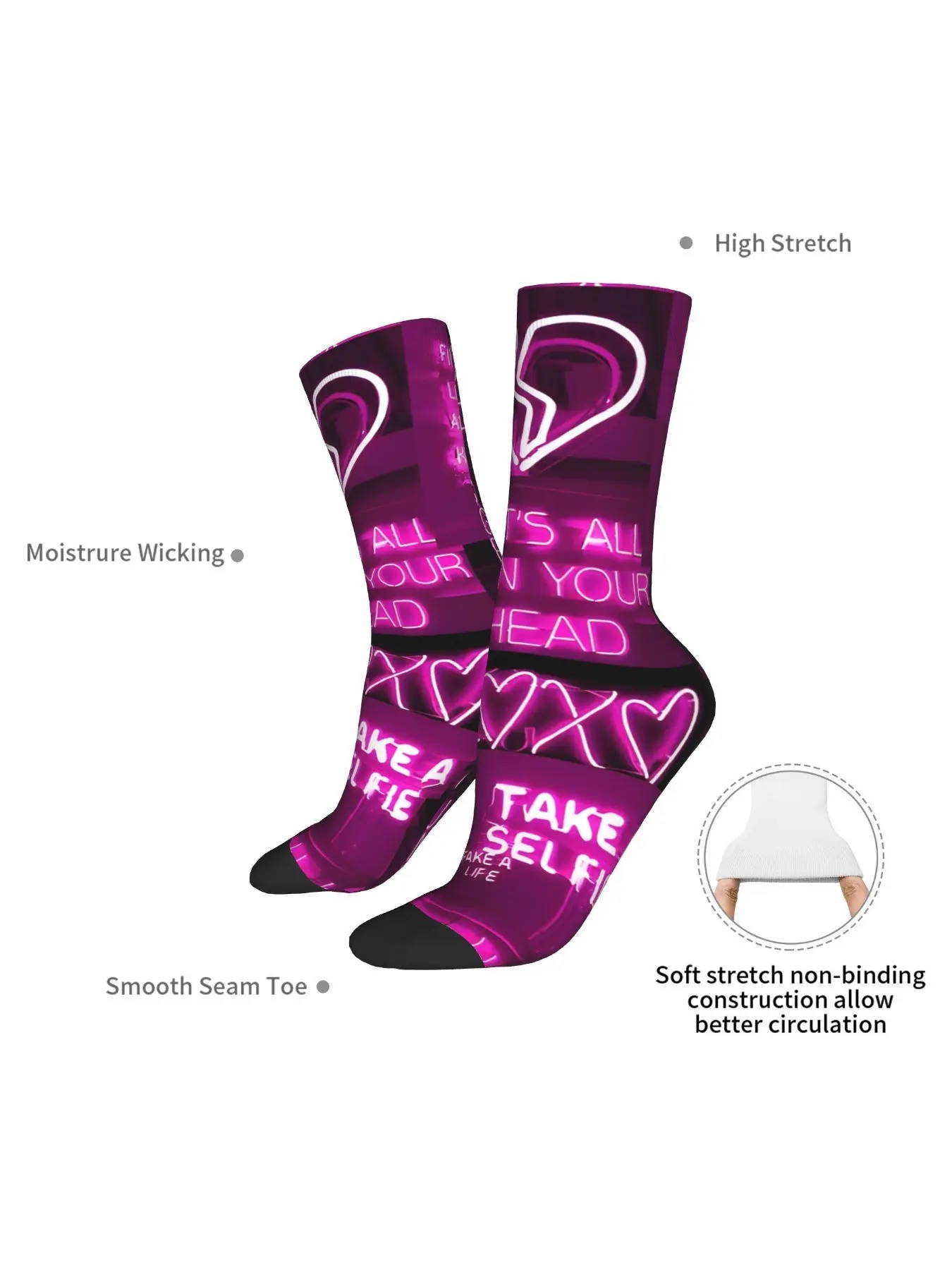 1 Pair Funny Crazy Sock for Men Cute Neon Pink Aesthetic Hip Hop Vintage Happy Quality Pattern Printed Crew compression Sock Novelty Gift
