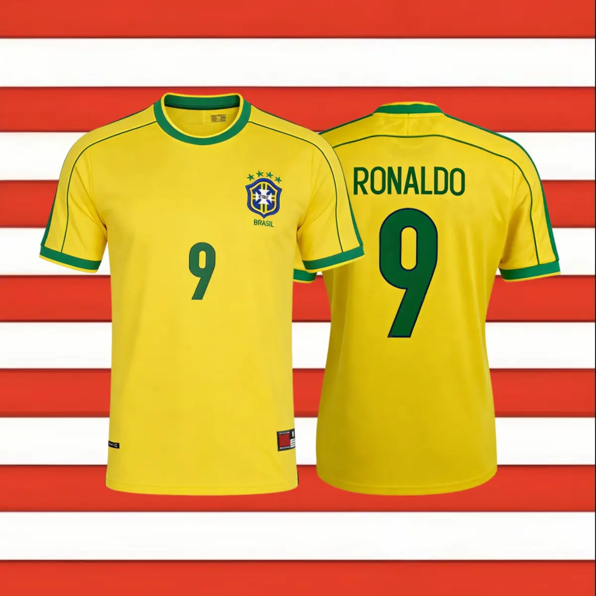 98 World Cup Brazil Short Sleeve Jerseys No.9 Ronaldo Soccer Jersey Retro Football Jersey