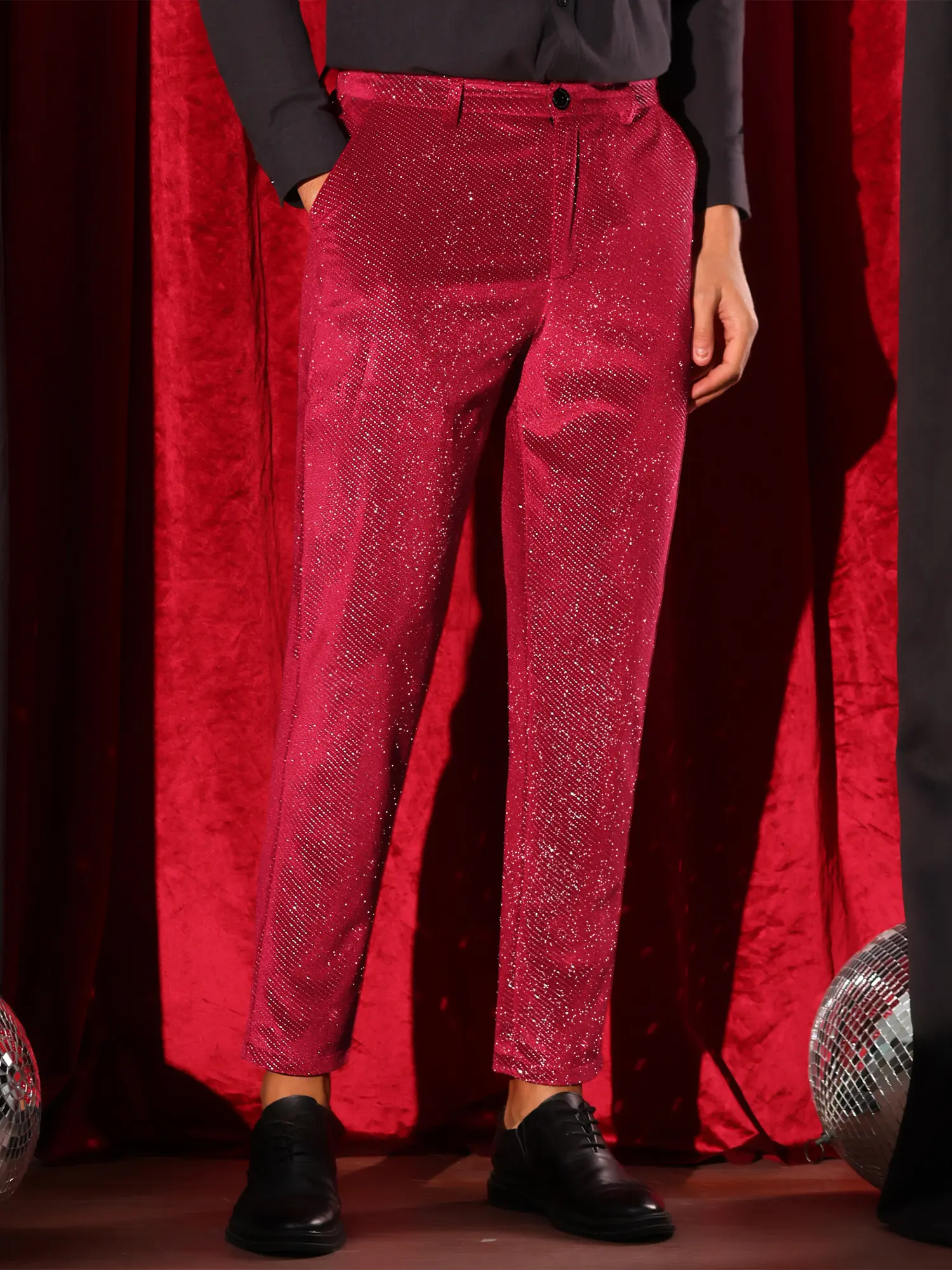 【OCCASIONS】Suitable for nightclubs, parties, and disco events, these glitter velour pants ensure you arrive in style and leave an impression.