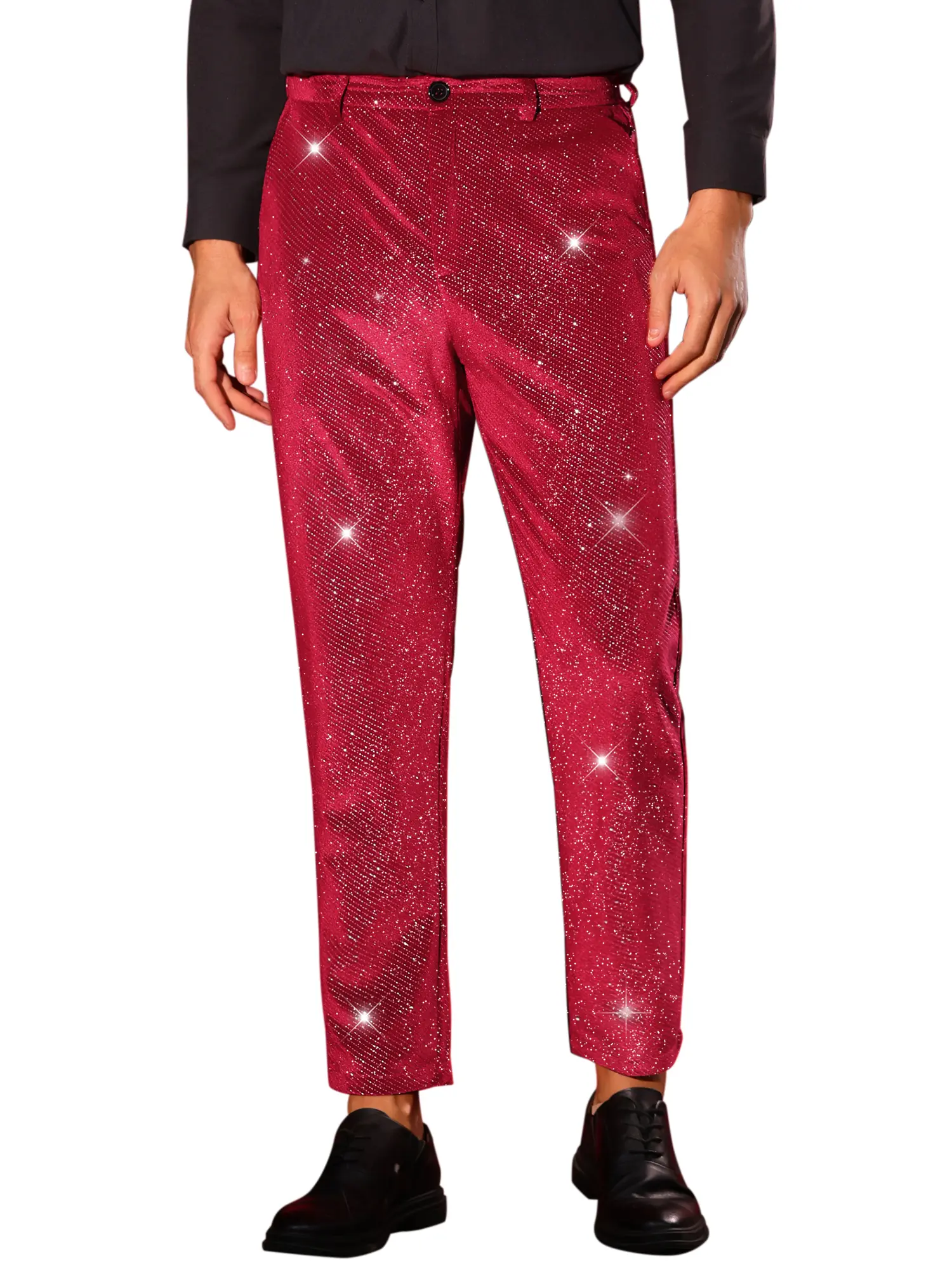INSPIRE CHIC Glitter Velvet Pants Men Metallic Zipper Button Party Straight Leg Shiny Velour Trousers
