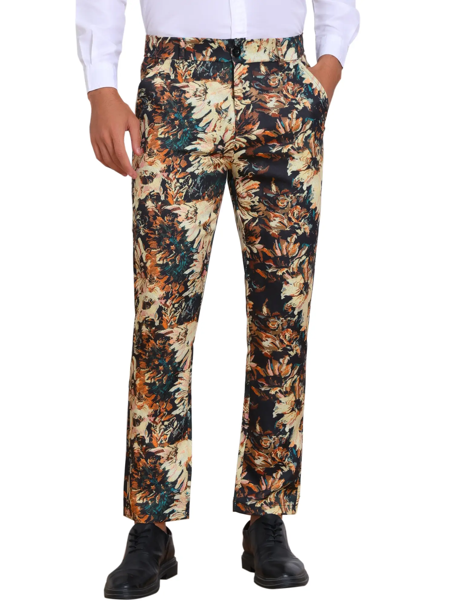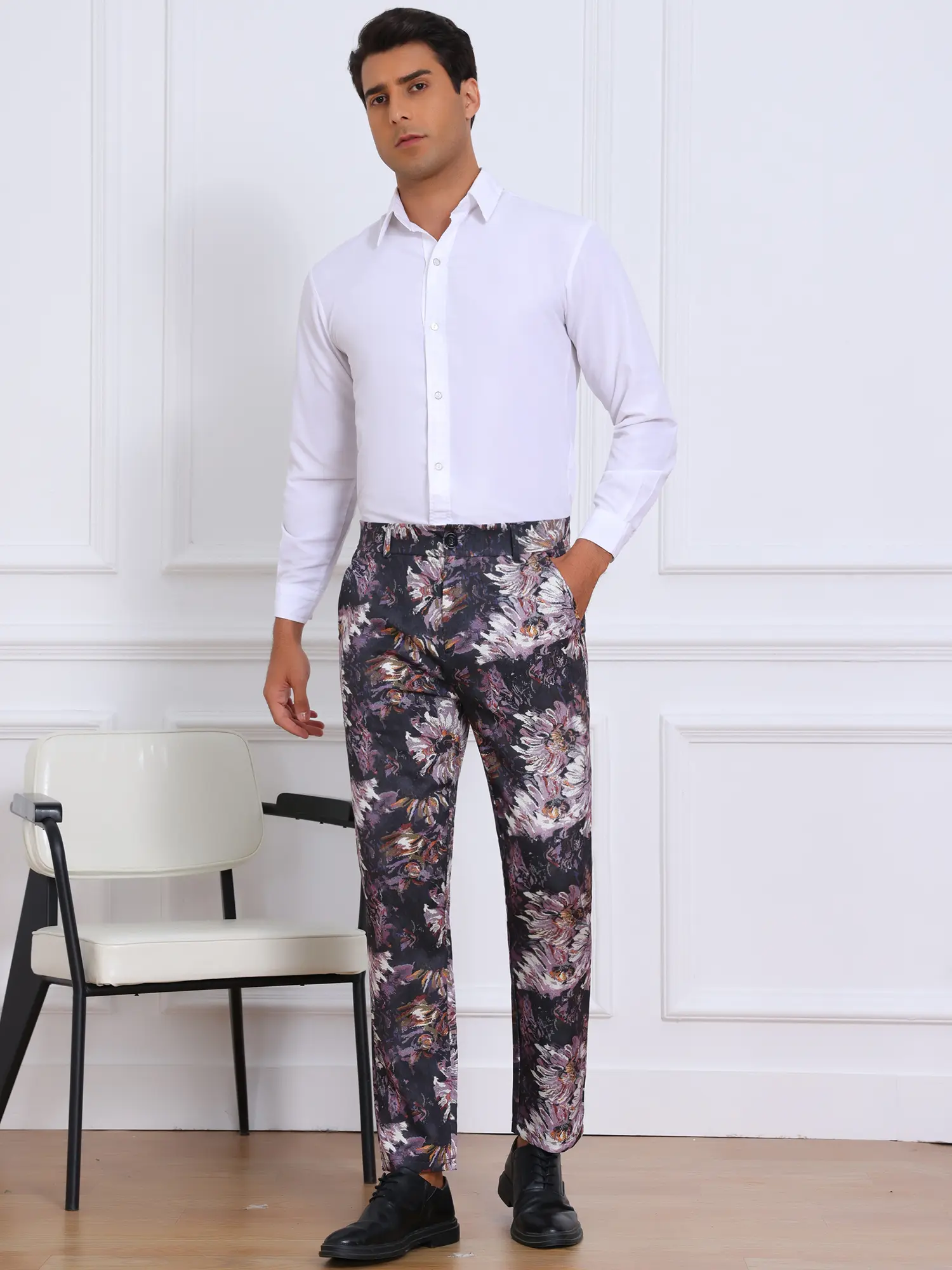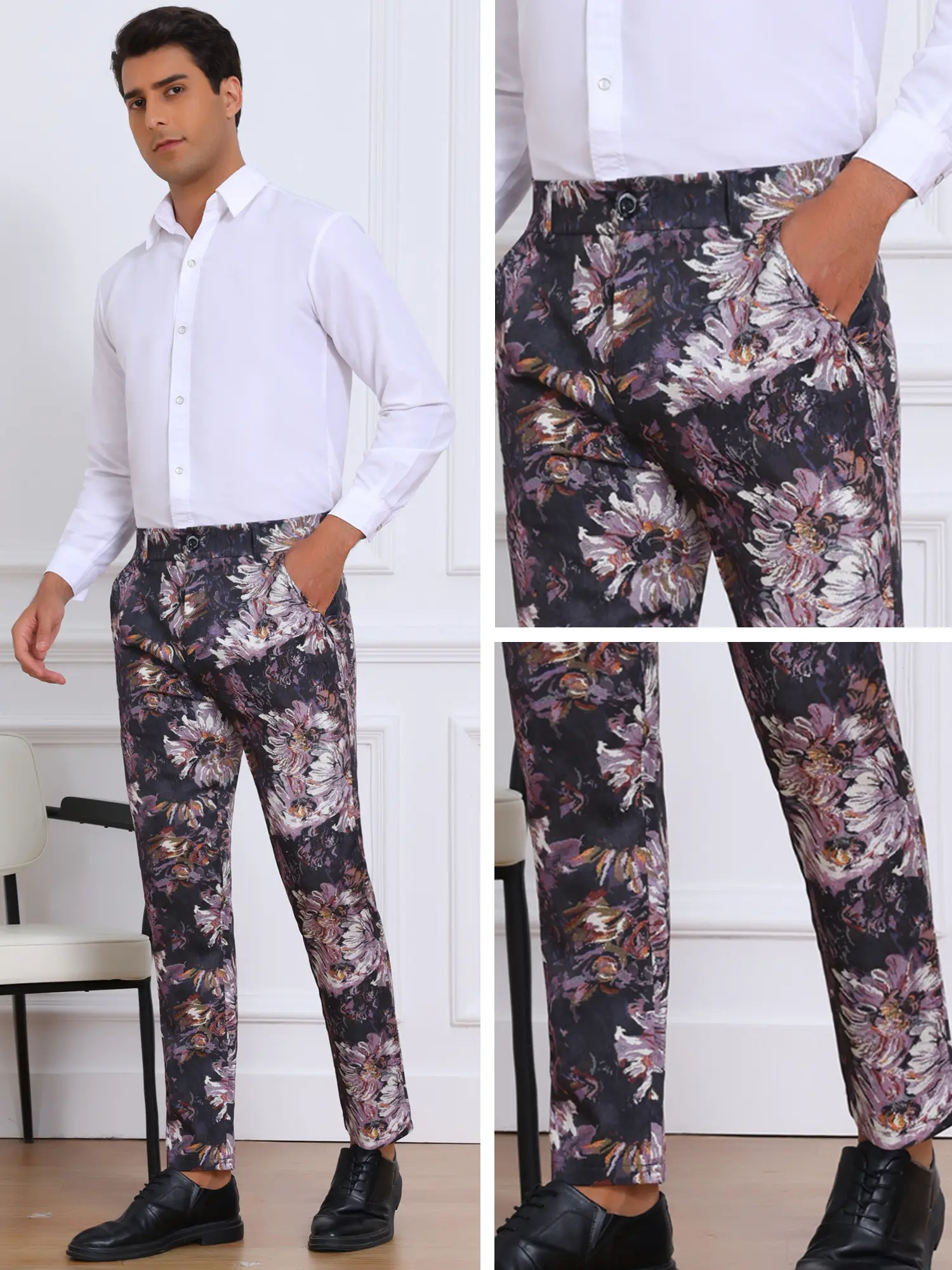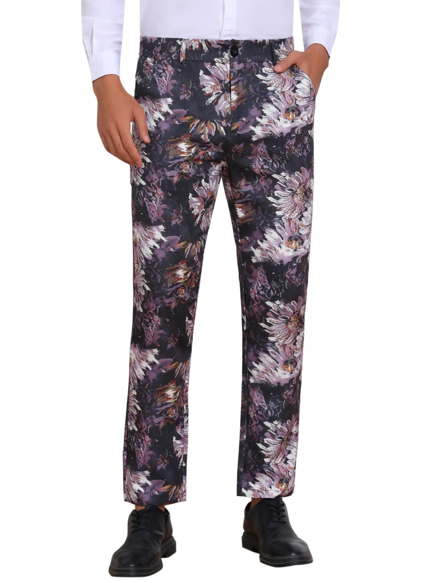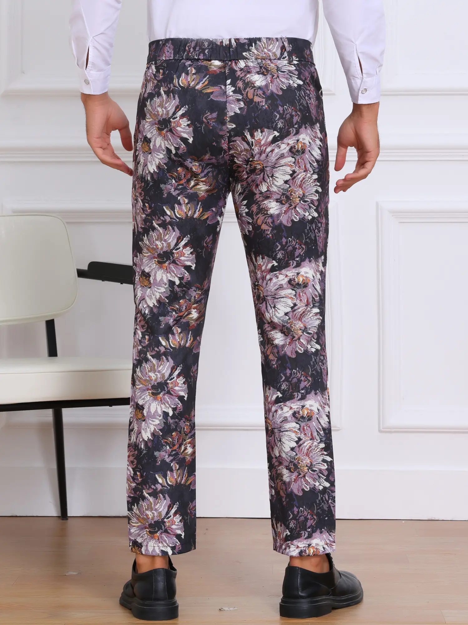 INSPIRE CHIC Purple Floral Pants Men Pattern Trousers Straight Leg Flat Front Flower Printed Pants