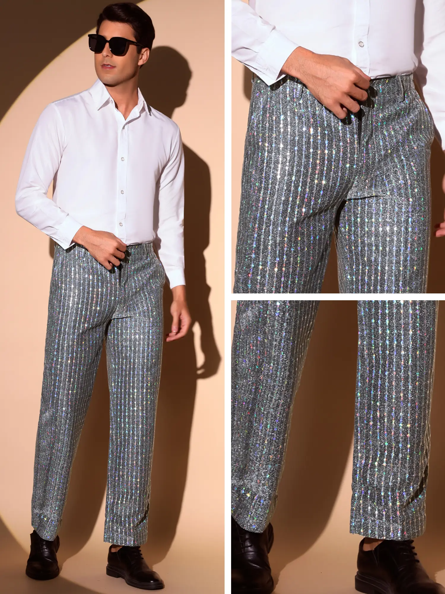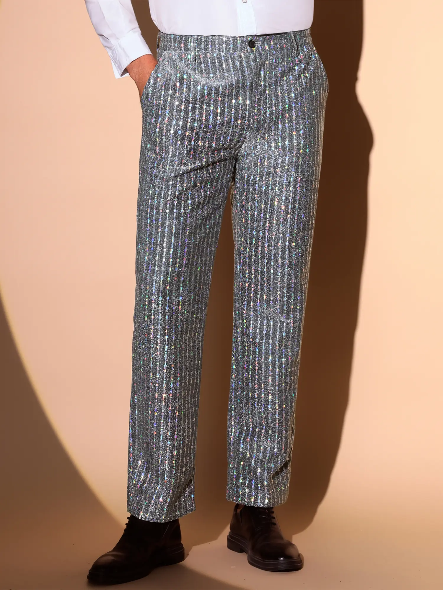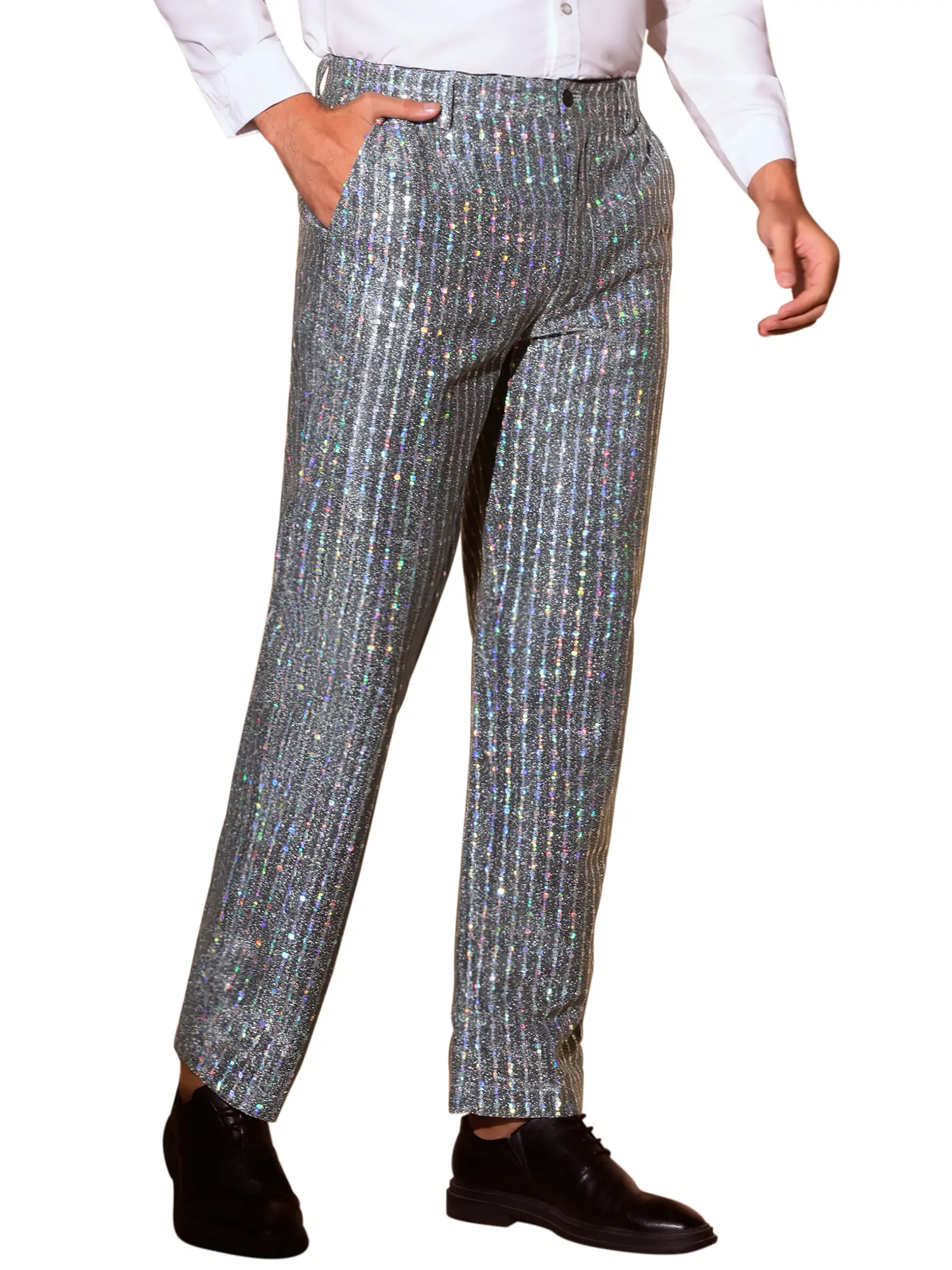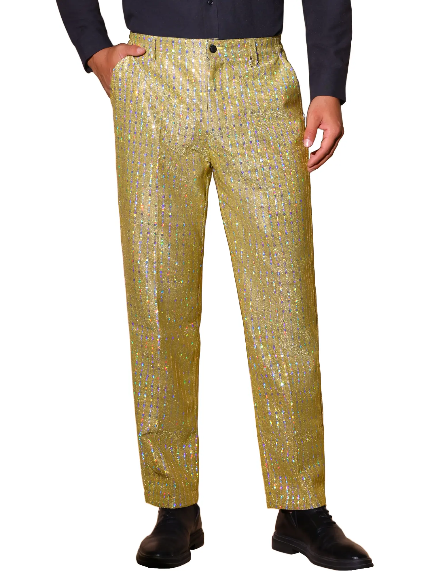 INSPIRE CHIC Sequin Pants Men Straight Leg Shiny Trousers 70s Disco Party Metallic Pants