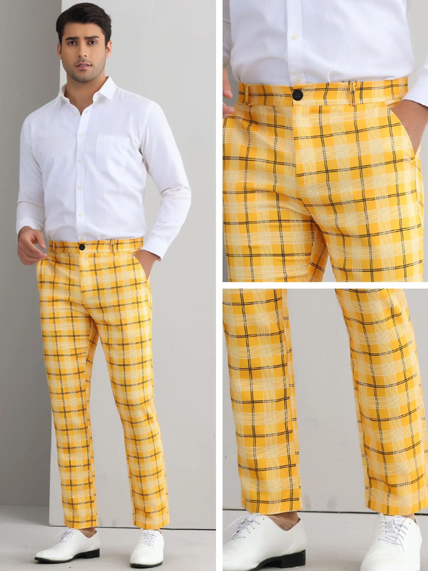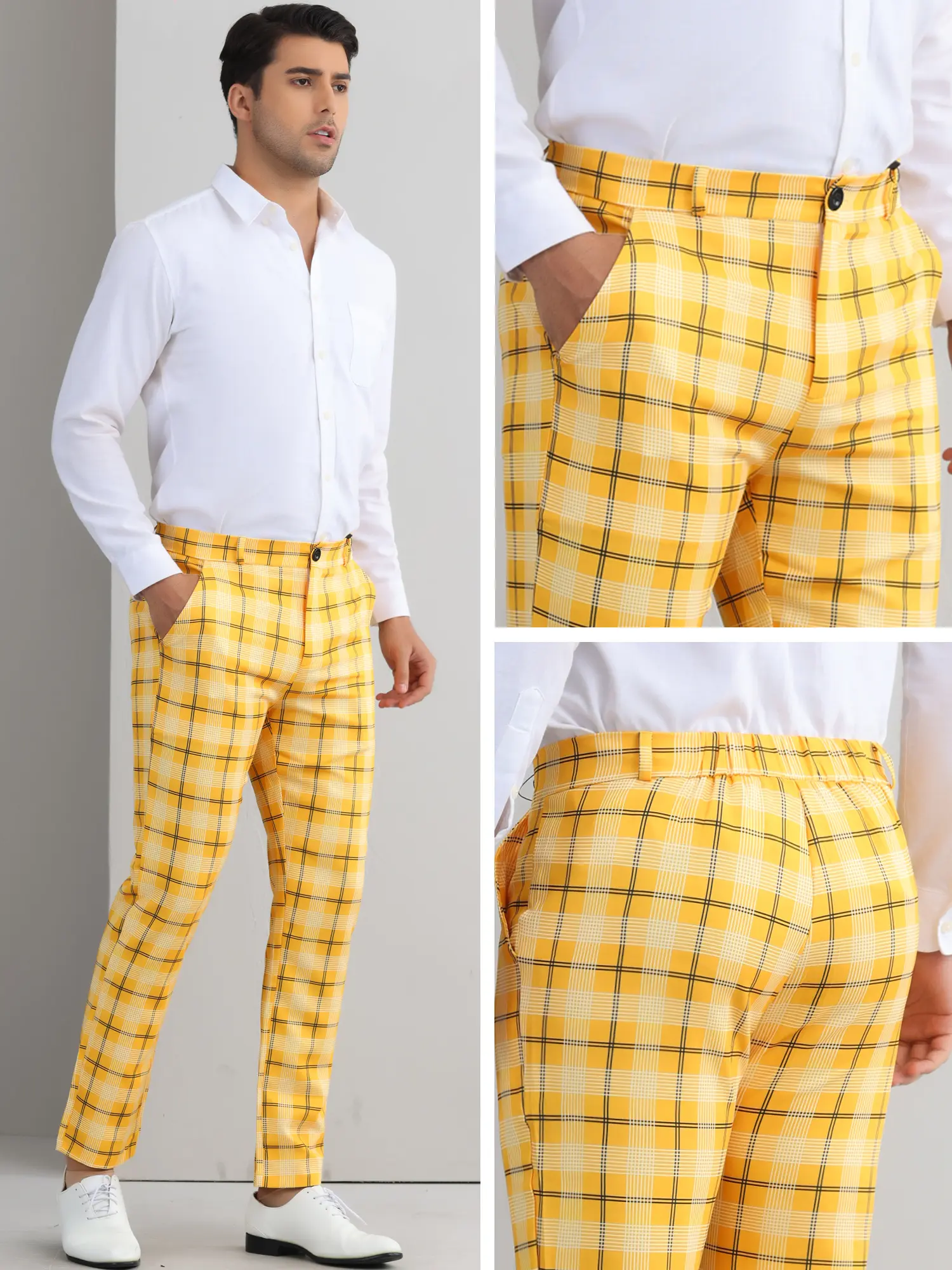【FORMAL STYLE】You can pair the plaid dress pants with suit shirts, polos, or sports coats for a classic office style.