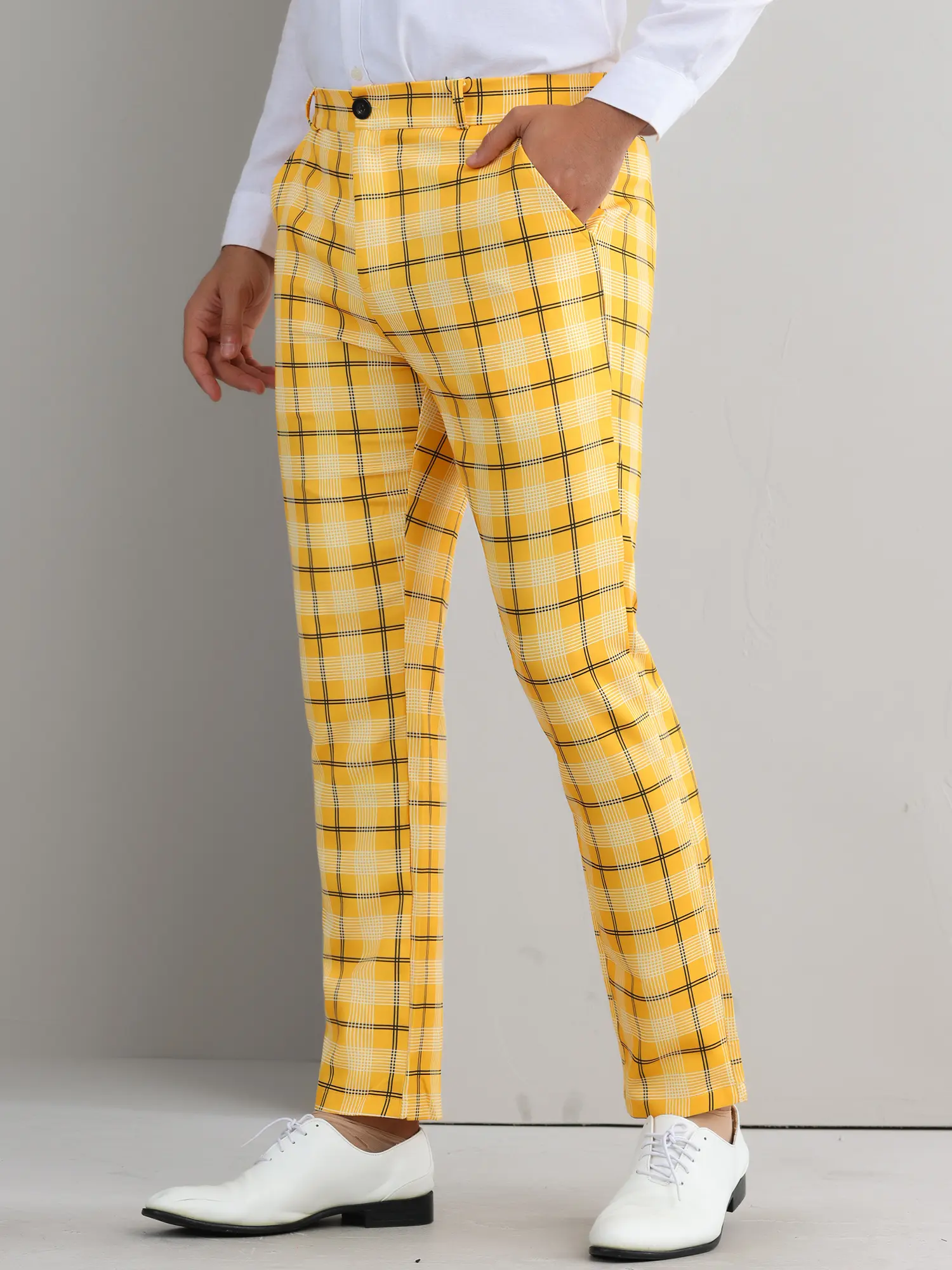 INSPIRE CHIC Plaid Pants Men Color Block Straight Leg Checked Pattern Trousers