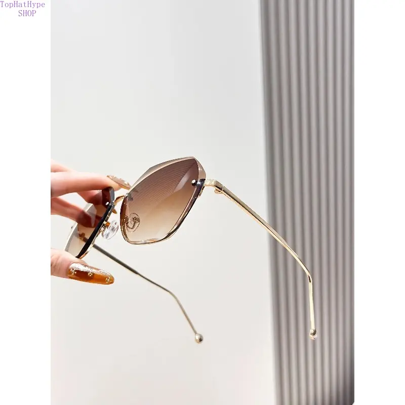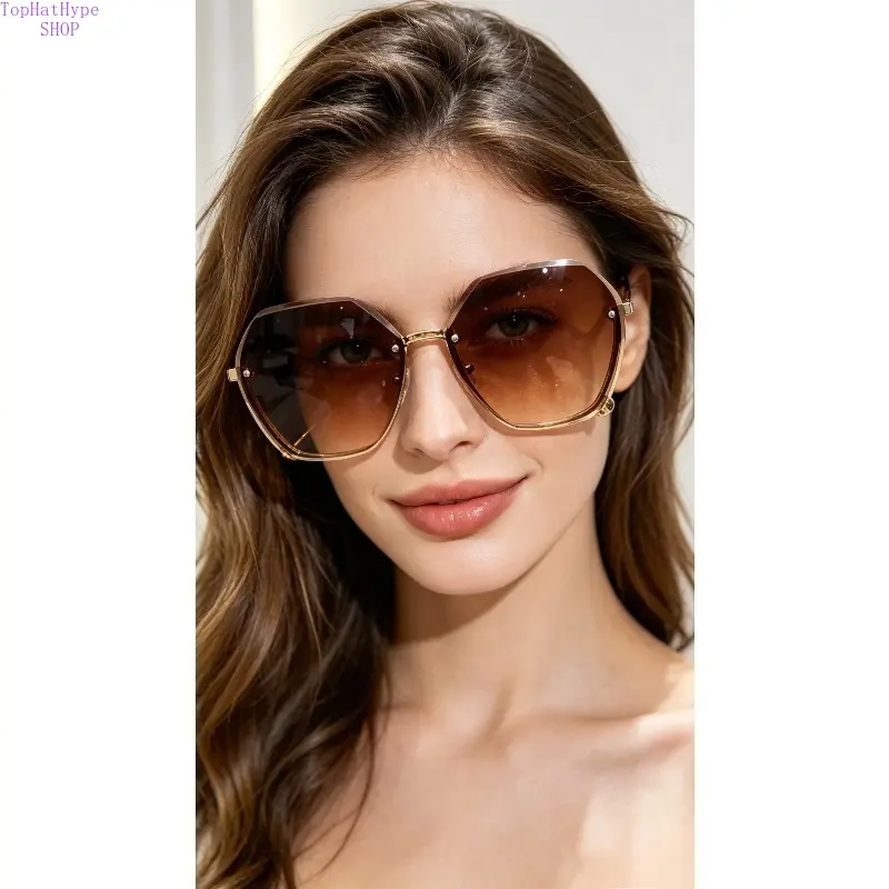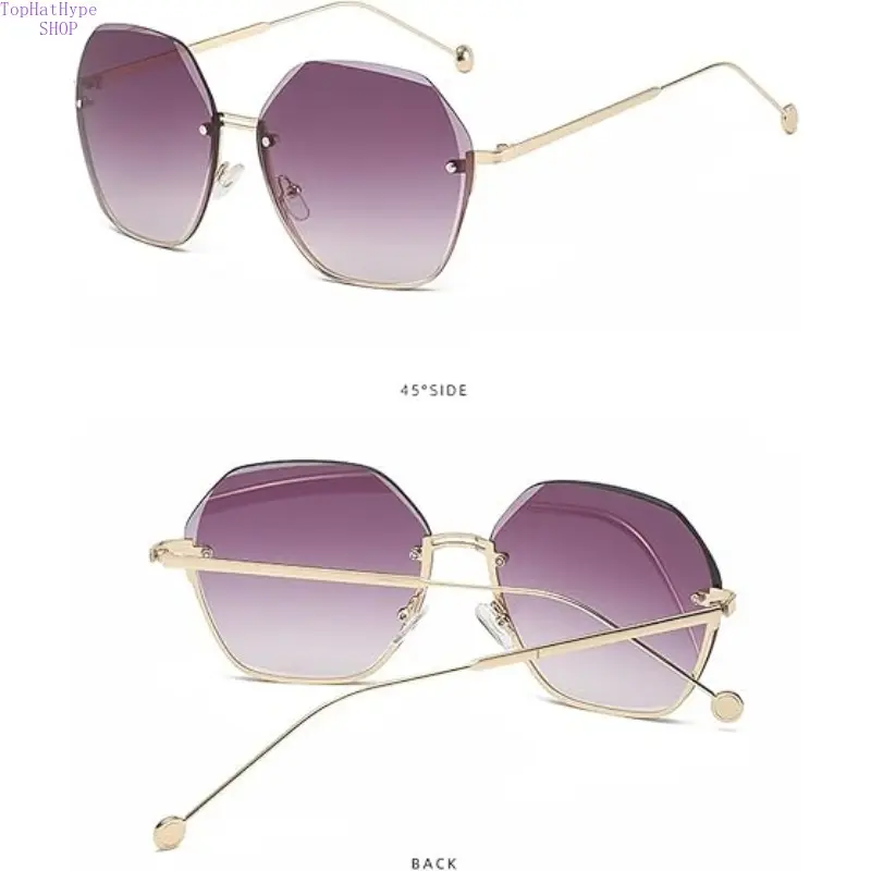 Elegant Gold Gradient Frameless Sunglasses for Women, Hexagonal Large Metal Arms, UV Protection Multi-Color Shades Ideal for Party, Daily Wear, Travel & Holiday Gifting