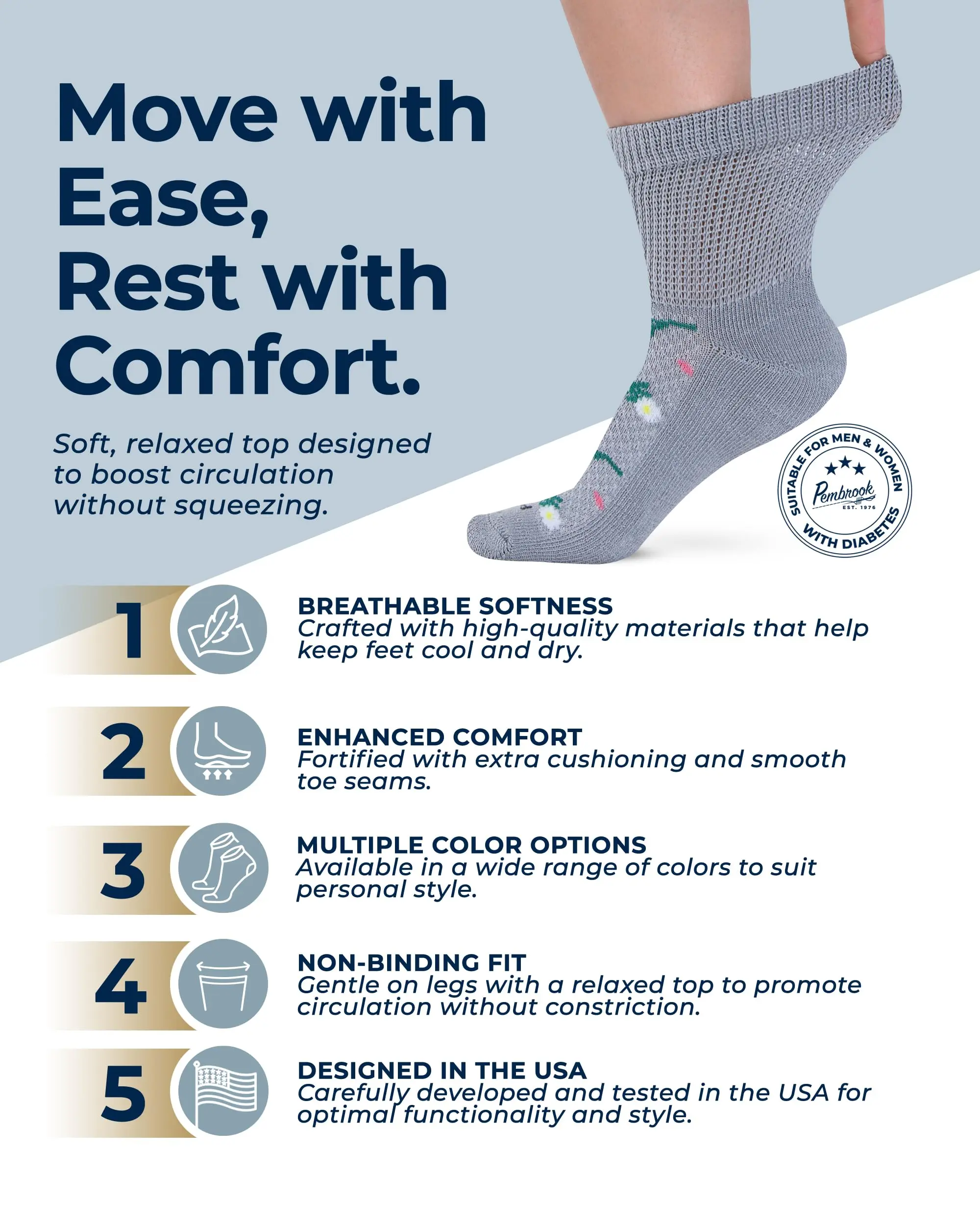 Unique Colors & Design - Available in a range of classic and versatile women's colors, these diabetic socks come in a convenient 6-pair pack, combining everyday style, comfort, and exceptional value.