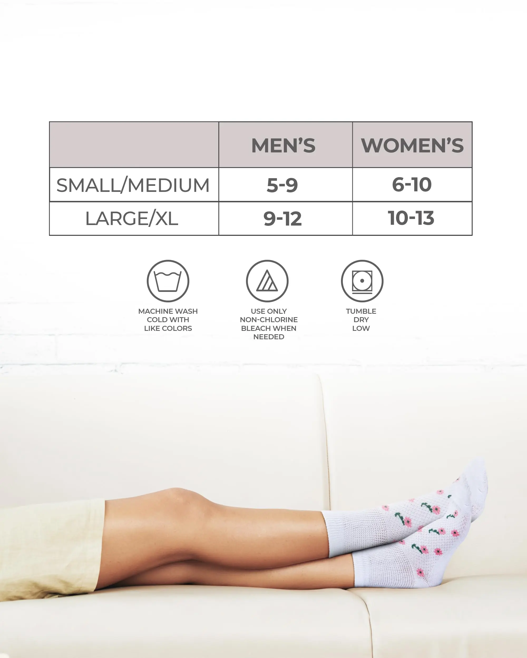 Sizing & Care - Medium womens diabetic socks fit men's 5-9 and women's 6-10, while Large fits diabetic ankle socks men 9-12 and women 10-15. With machine-washable fabric, these socks are easy to clean and built to keep their comfort and durability.