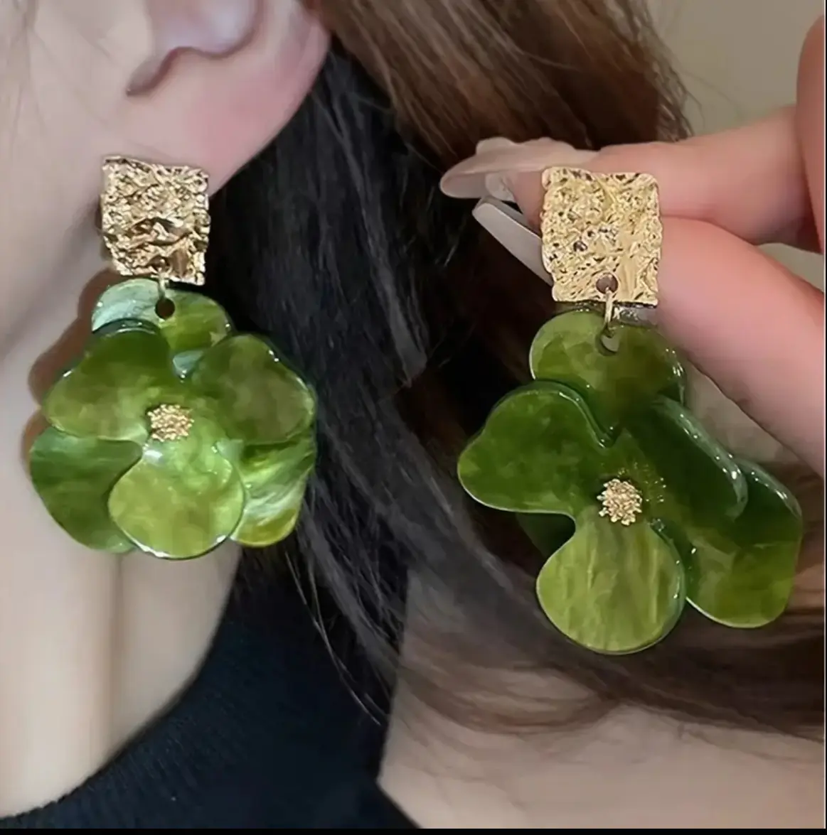 A pair of long acrylic petal earrings, vintage-style three-leaf flower earrings, suitable for parties, banquets, anniversaries, and weddings