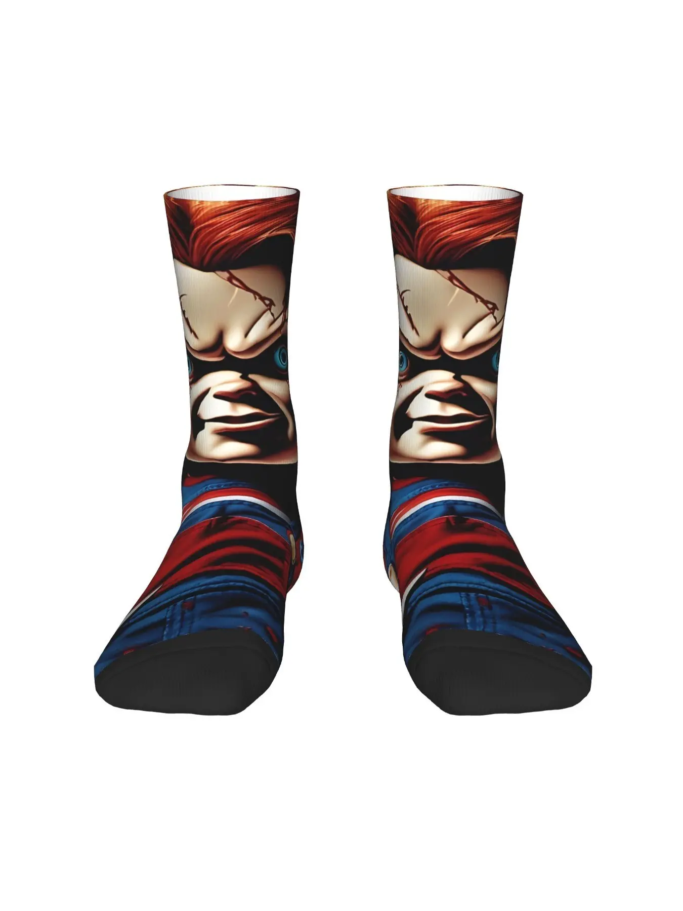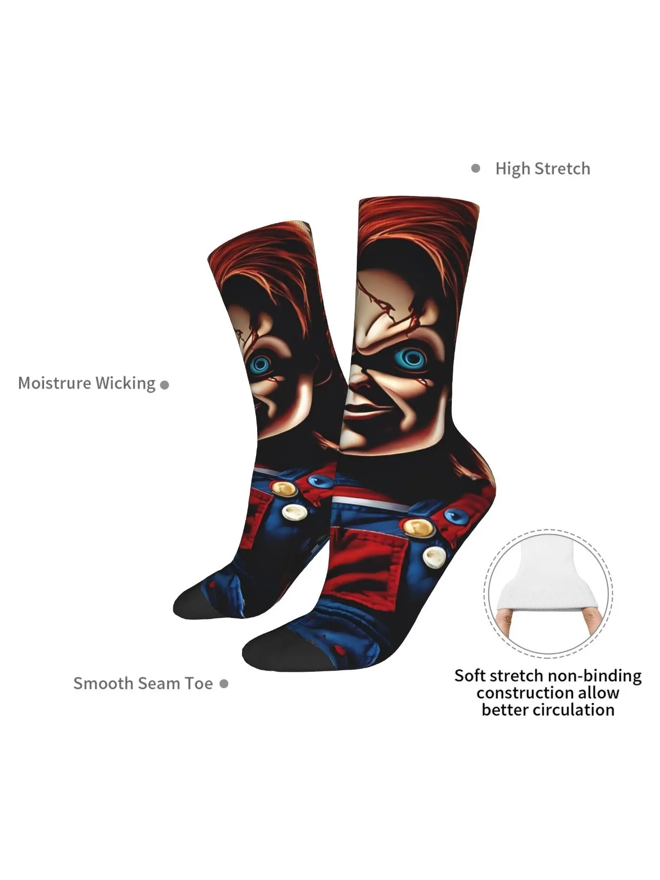 1 Pair Happy Funny Men's compression Sock Chucky The Doll Vintage Harajuku Street Style Novelty Seamless Crew Crazy Sock Gift Printed Christmas Halloween