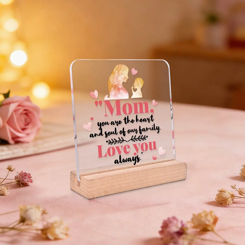 1pc Mother Gift Acrylic Ornament Sign With Wooden Base, Warm Heart Love Quote Design, Ideal Gift For Mother On Mother'S Day/Birthday, Suitable For Home, Desktop, Room, Festival, Bedside Table Decoration