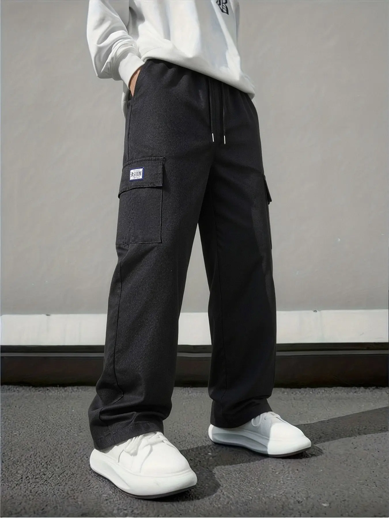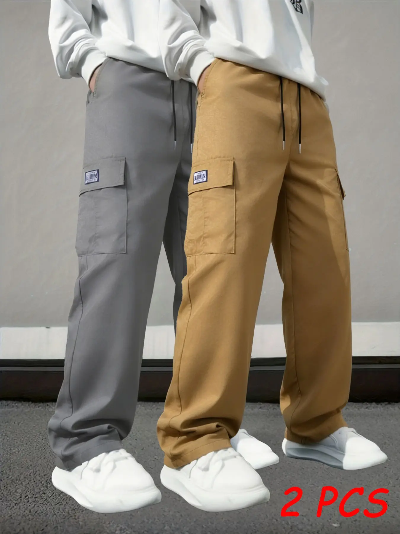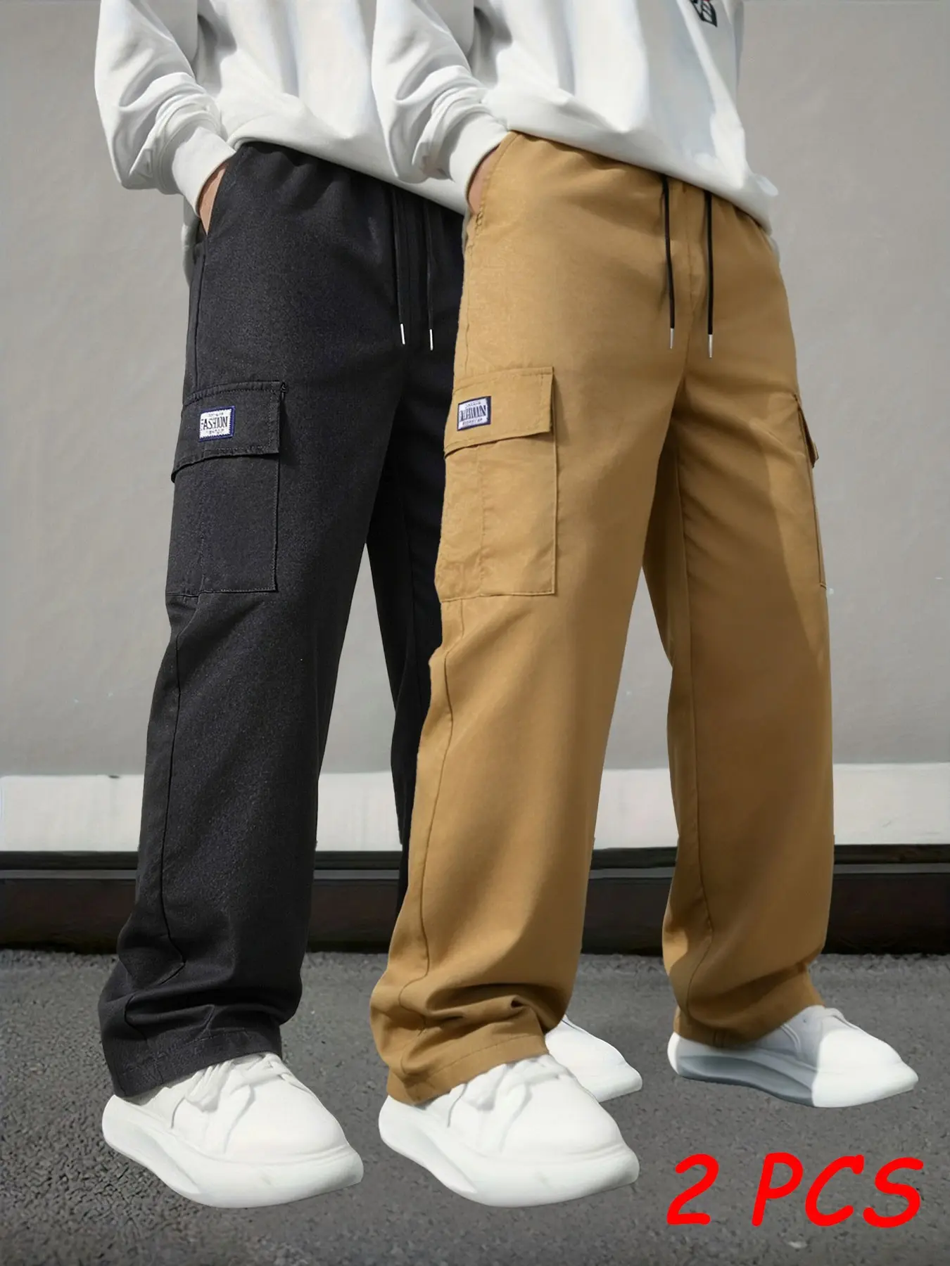 Men's Work Pants 3-Pack, Casual Tie-Waist Loose Fit Straight Leg, Multiple Pockets, Breathable Lightweight Streetwear, //