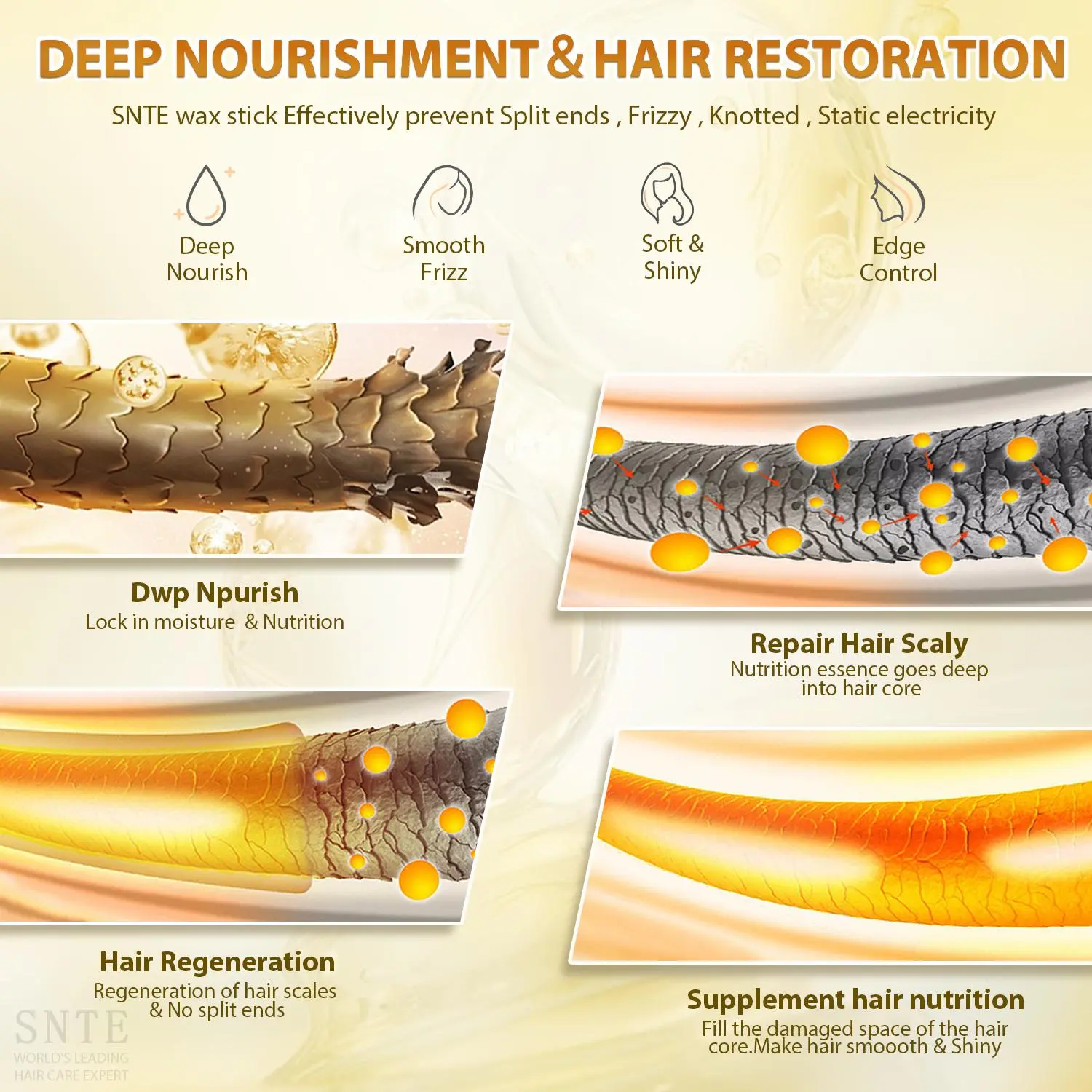·【Styling & Smoothing Frizz】Quickly tame flyaway hair. SNTE Wax Stick is rich in castor oil, which effectively smooths hair frizz, edge smoothing, tame baby hairs... Solve all stray hair problems.