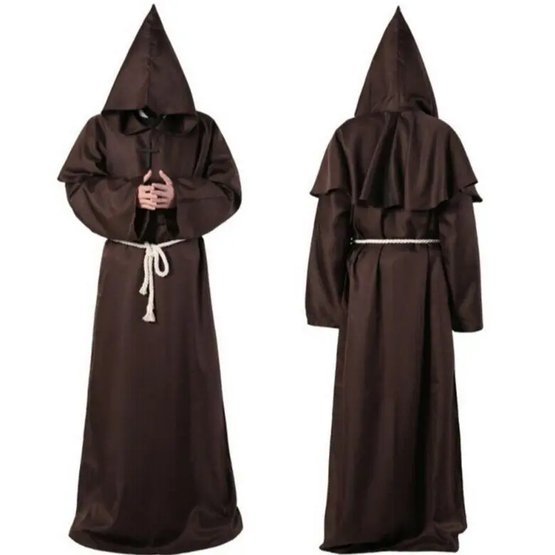 Monk Clothing Ancient Costume Medieval Monk Robe Wizard Clothing Priest Clothing Halloween Cos Costume for Men Women