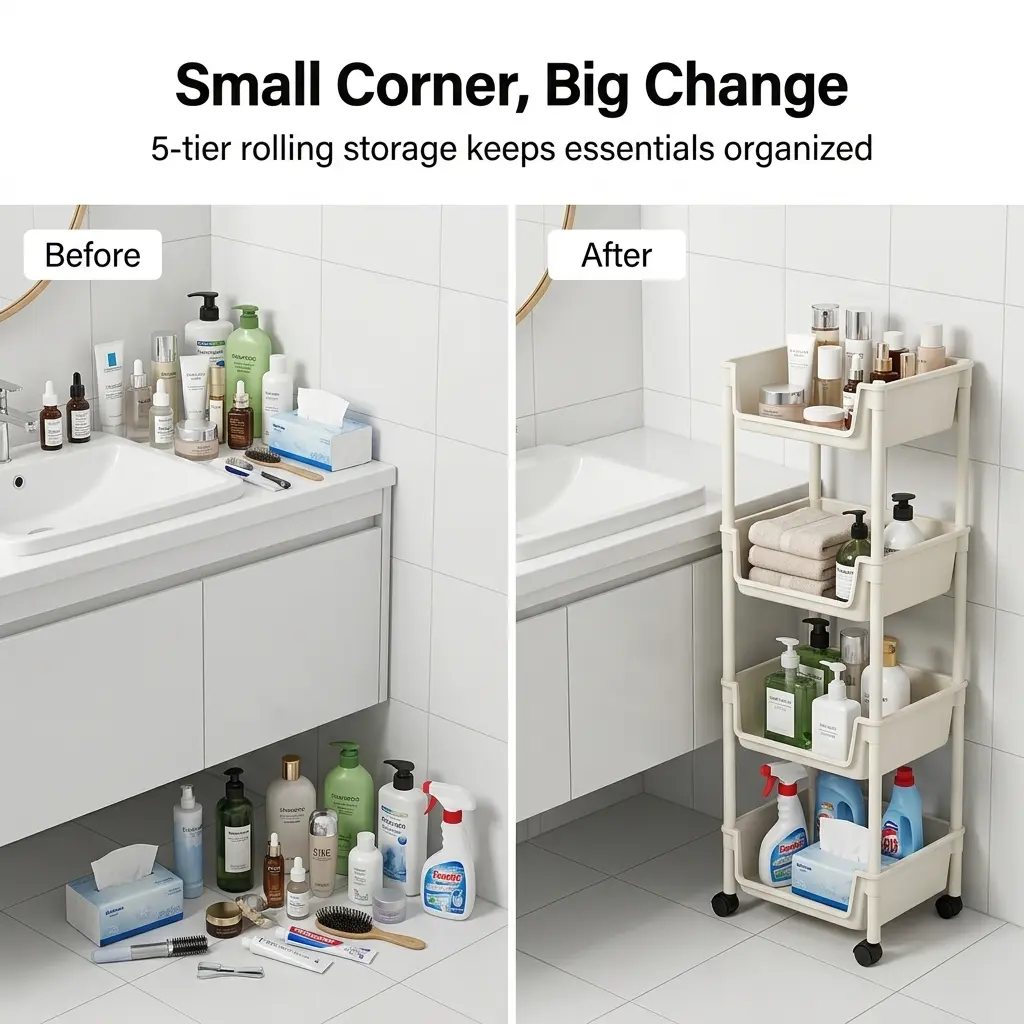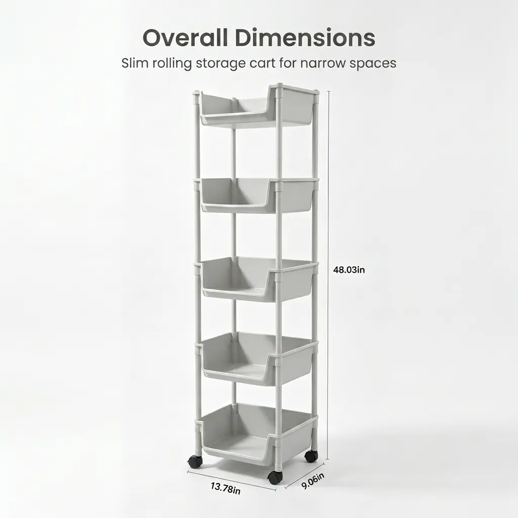 Bring minimalist order to your home with the PeaWove Slim Rolling Storage Cart. Thoughtfully designed to fit tight gaps and small areas, this 5-tier organizer combines sleek modern style with practical functionality to keep your space tidy and clutter-free.