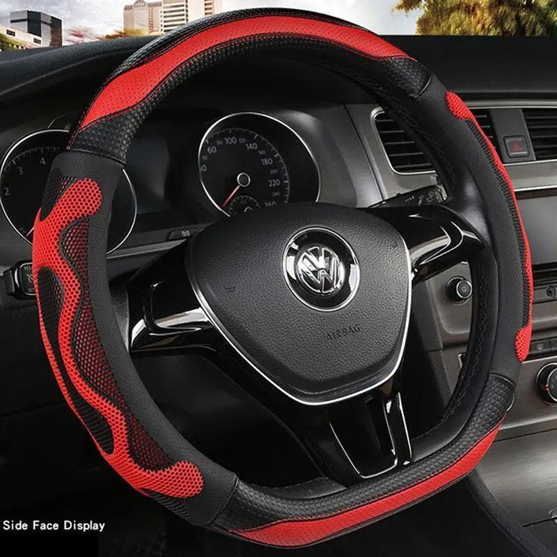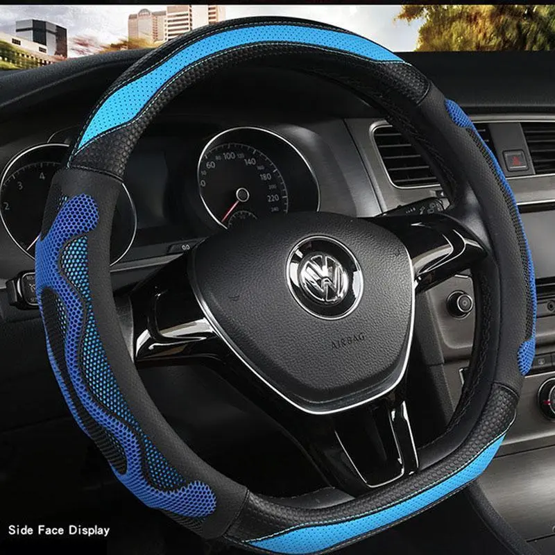 New D shape steering wheel cover universal car steering wheel protection embroidered leather steering wheel wrap wheel accessori