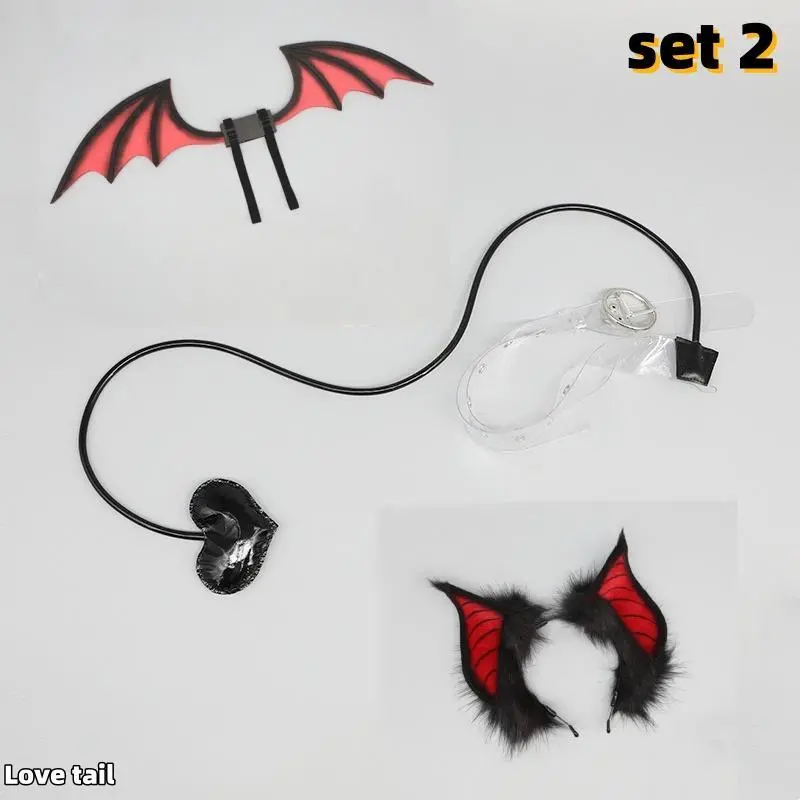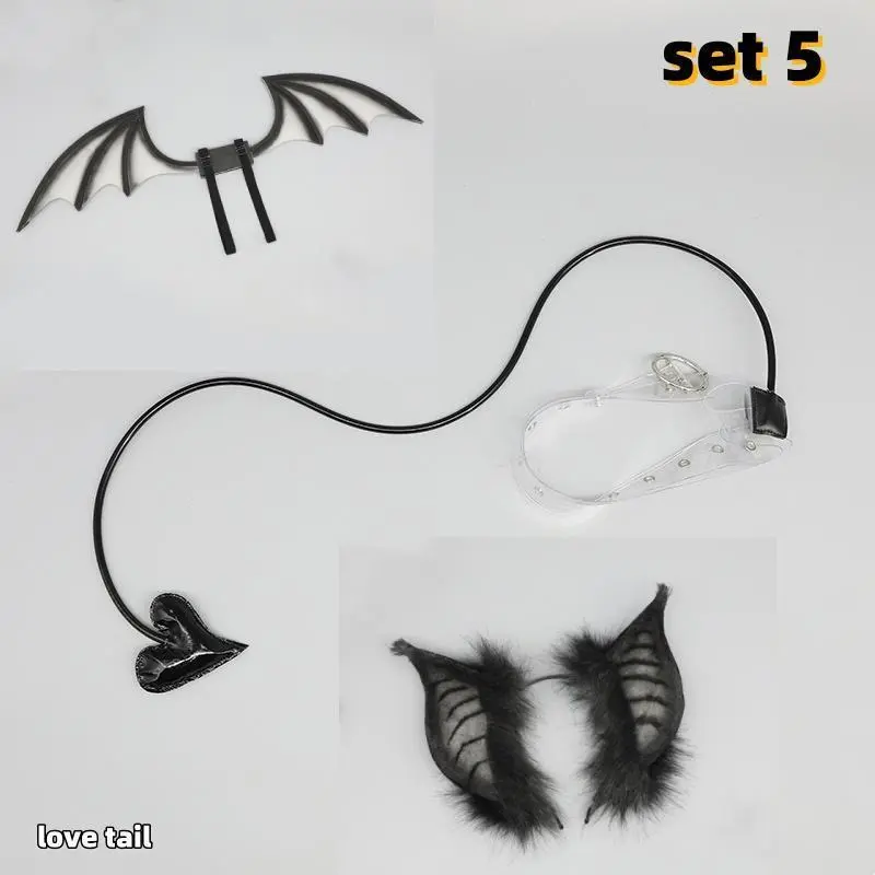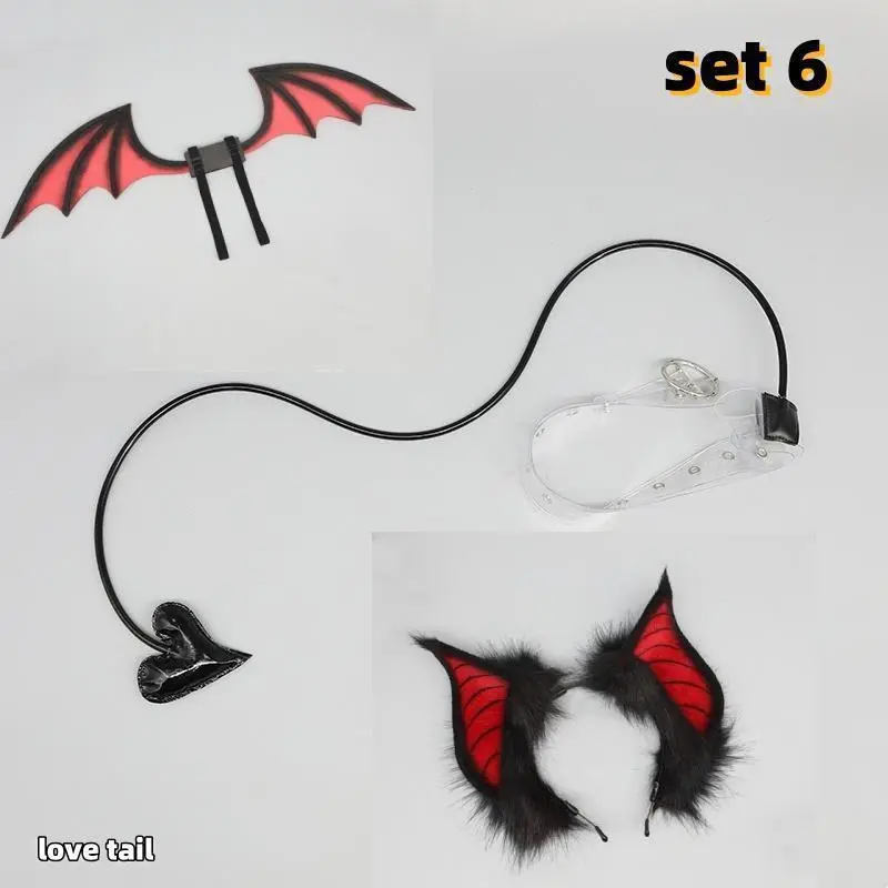 Animal Simulation Plush Furry Queen Devil Ear Wings Set Lolita Love Tail Halloween Cosplay Pros Carnival Party Cosplay Costume